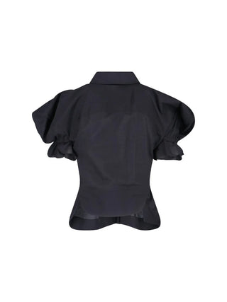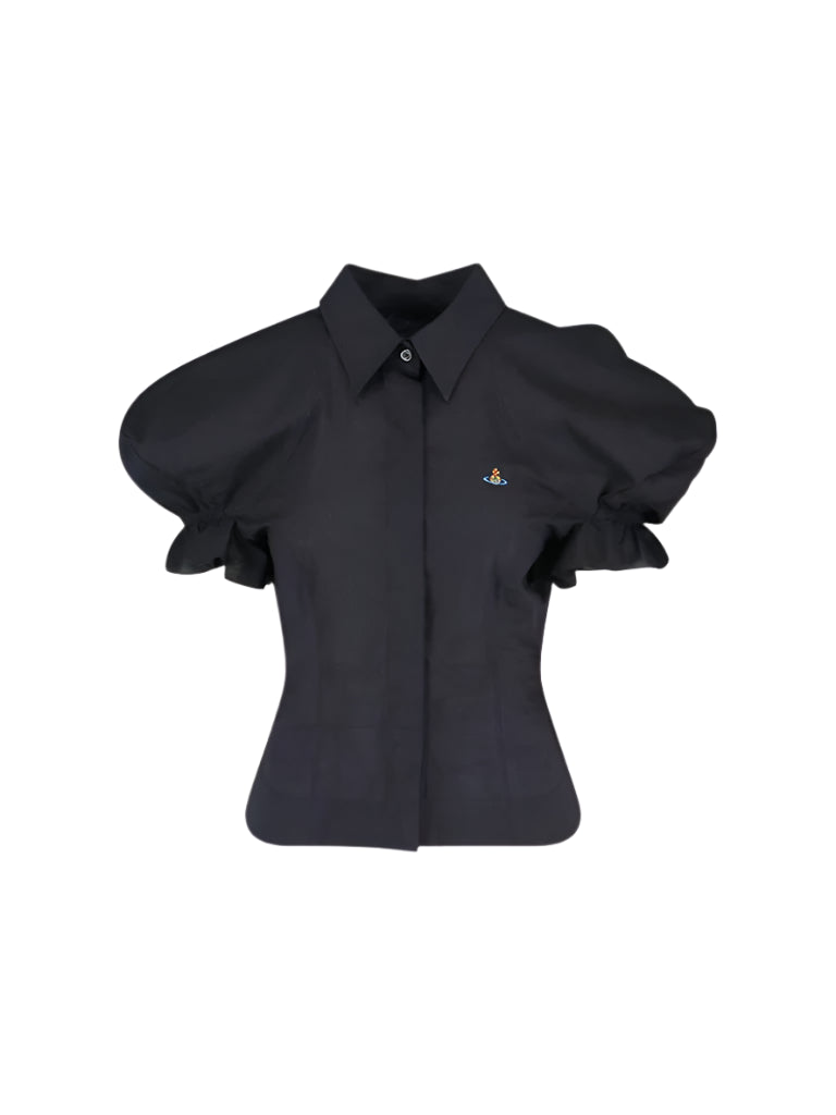 Gexy Top in Black by Vivienne Westwood channels bold sensuality with a sculptural edge. Crafted from stretch jersey for a second-skin fit, it features an asymmetric neckline, draped gathering, and signature corset-inspired seams. Both provocative and refined, it’s a striking expression of Westwood’s fearless, feminine aesthetic.