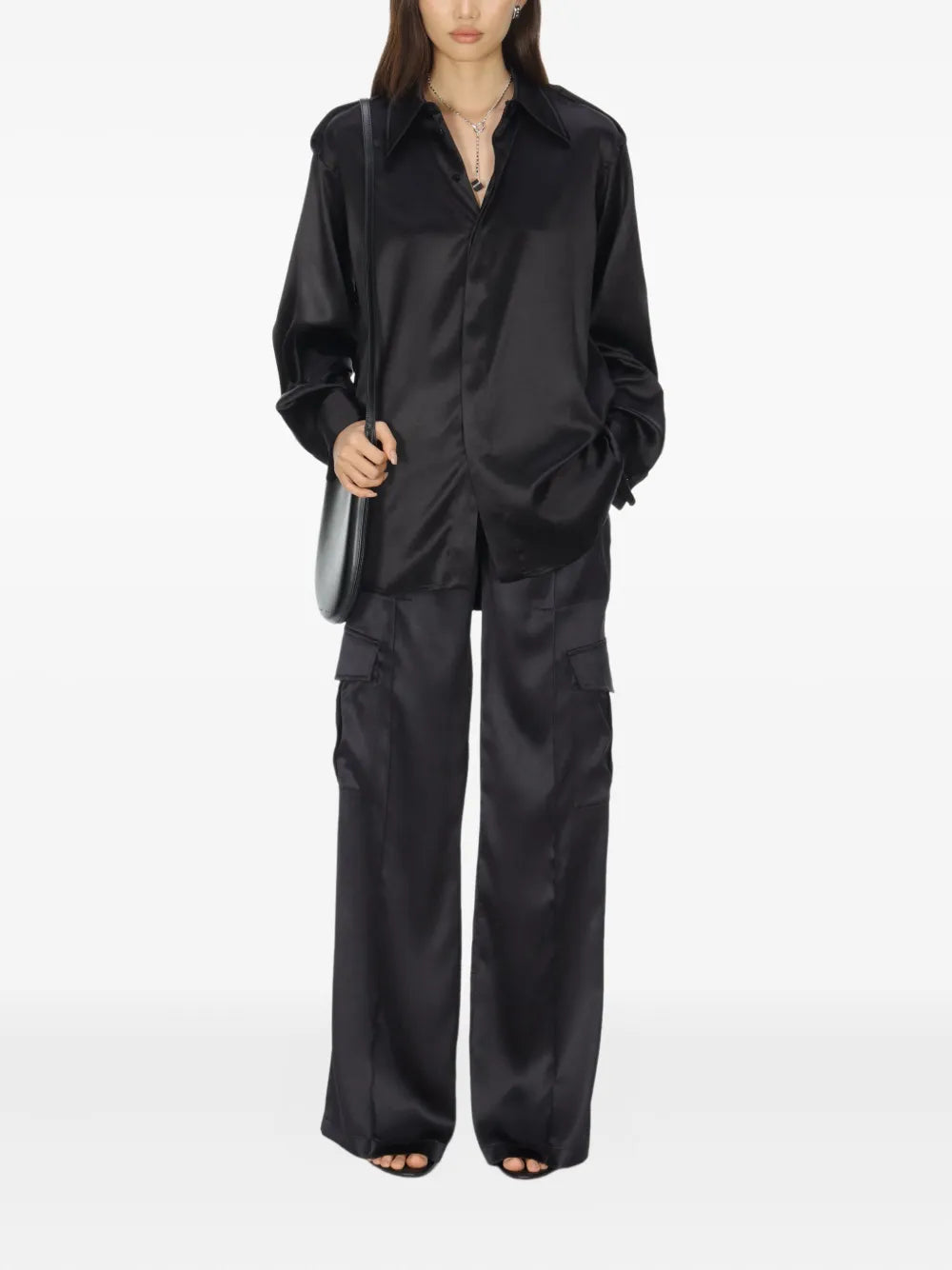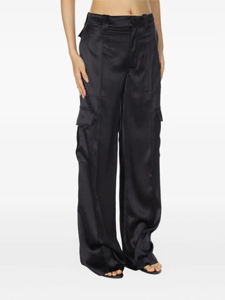 HighlightsBlackSilkSide flap pocketsRear flap pocketsBelt loopsZip fastening