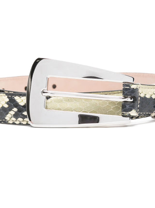 HighlightsBeige/blackLeatherEmbossed python-effectSilver-tone hardwareAdjustable fitPin-buckle fastening