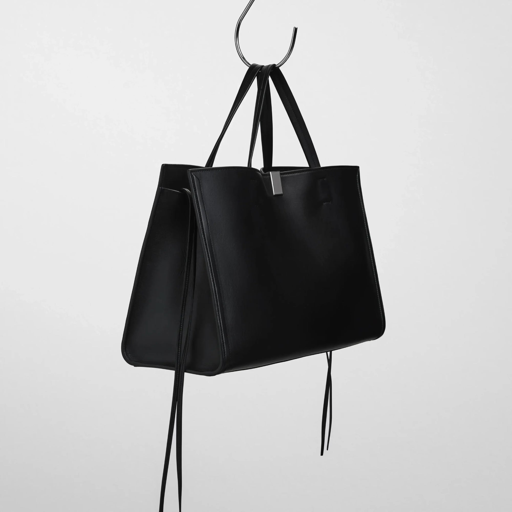 The Medium Kit Cabas in black combines effortless utility with sleek design. Crafted from durable, textured leather, this spacious tote features clean lines, sturdy handles, and subtle hardware for a refined finish. A versatile everyday companion that balances practicality with timeless elegance.