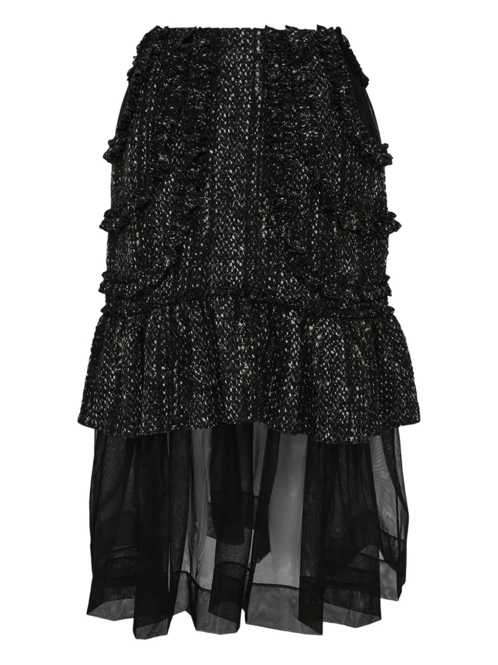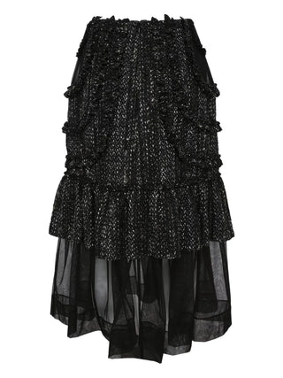 MULTI FRILL PATCHWORK FRAY SKIRT