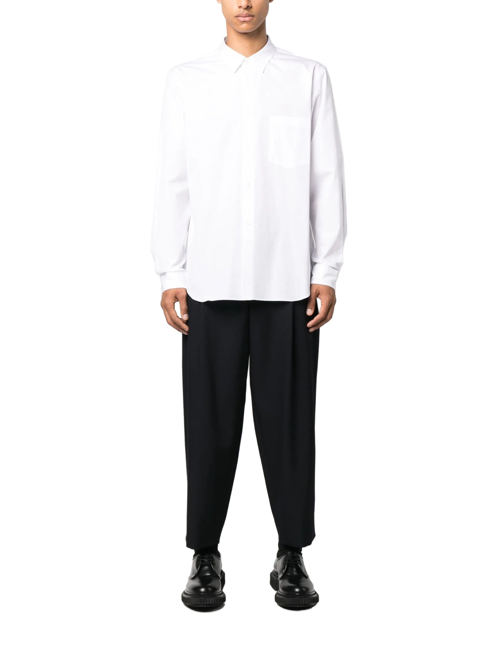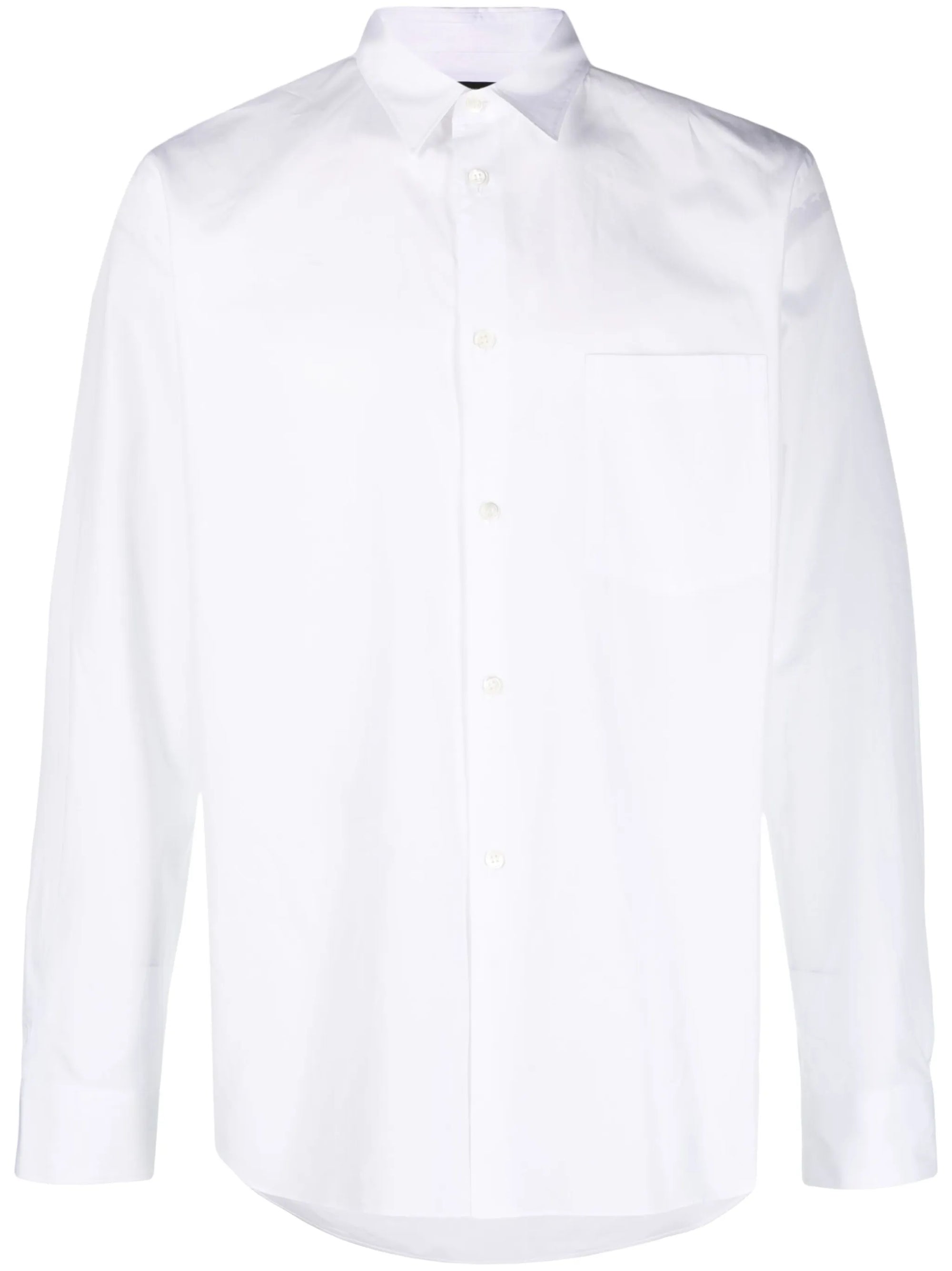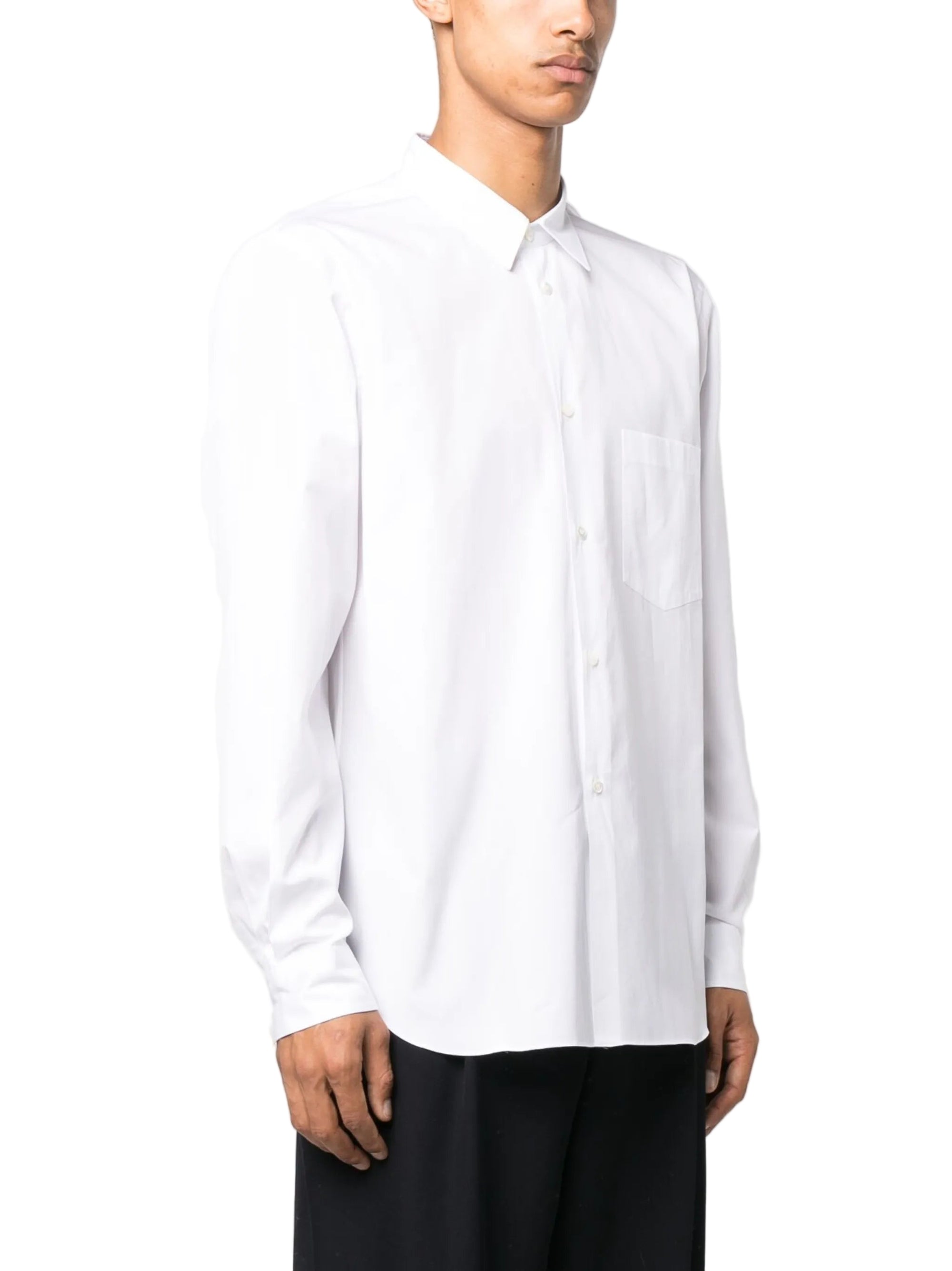 HighlightsMilk whiteCottonSpread collarChest patch pocketFront button fasteningLong sleevesButtoned cuffsCurved hem