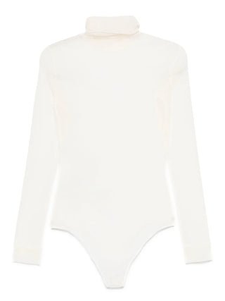 Maison Margiela’s semi-sheer bodysuit is made from lightweight, stretch fabric for a second-skin fit. Featuring long sleeves and a minimalist silhouette, it offers versatile layering under jackets or separates. Subtle tonal detailing and the signature four-stitch motif complete this refined, modern statement piece.
