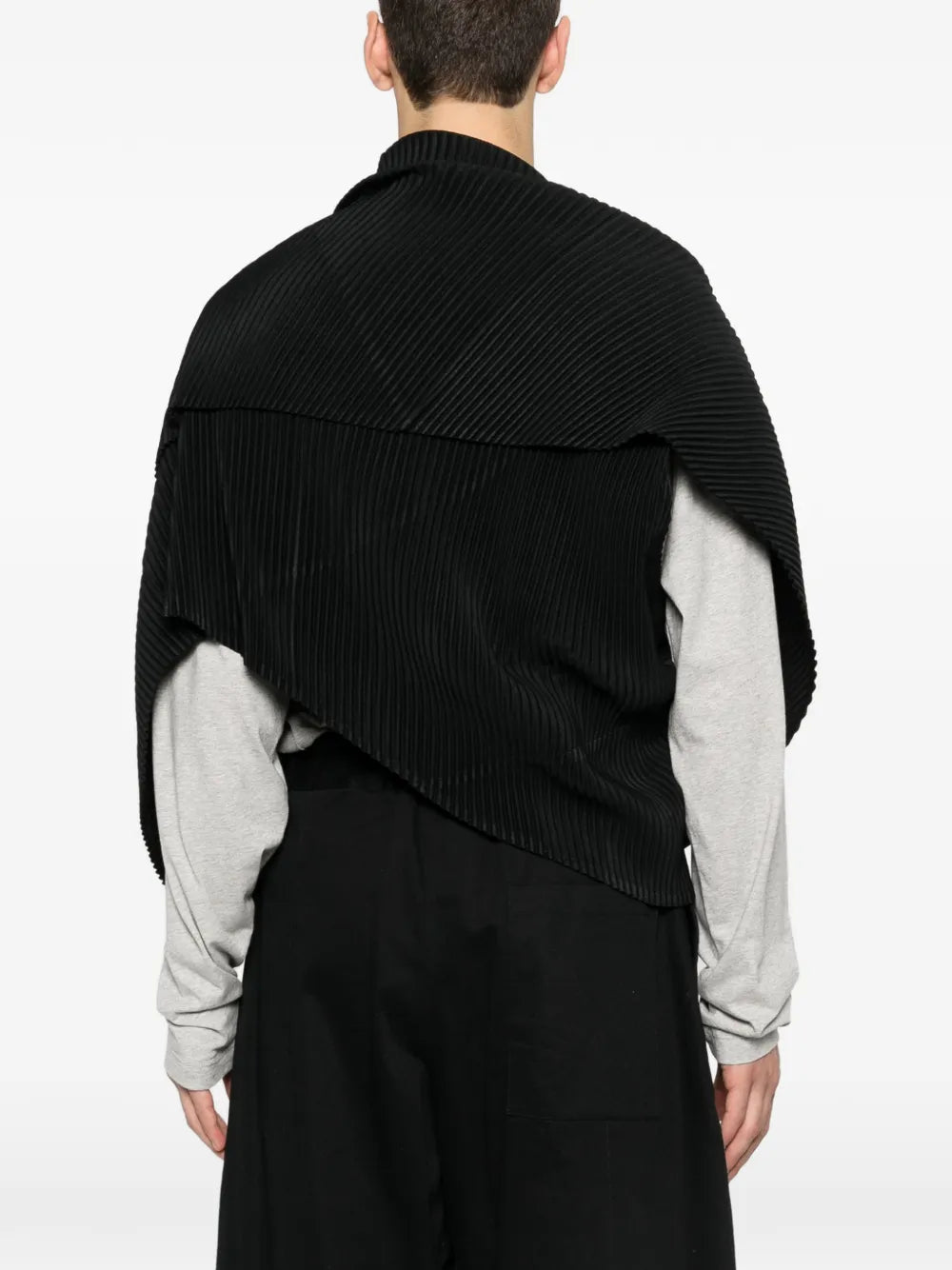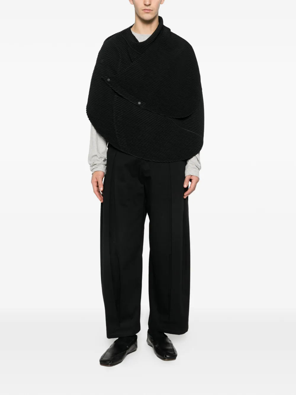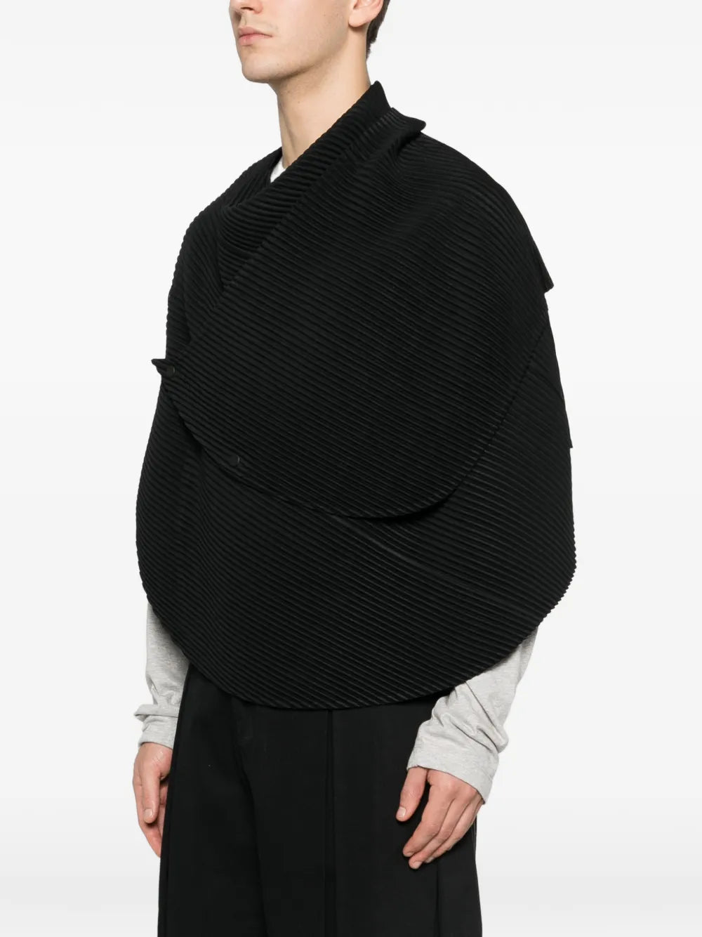 HighlightsBlackPleated textureButton detailAsymmetrical designFolded construction
