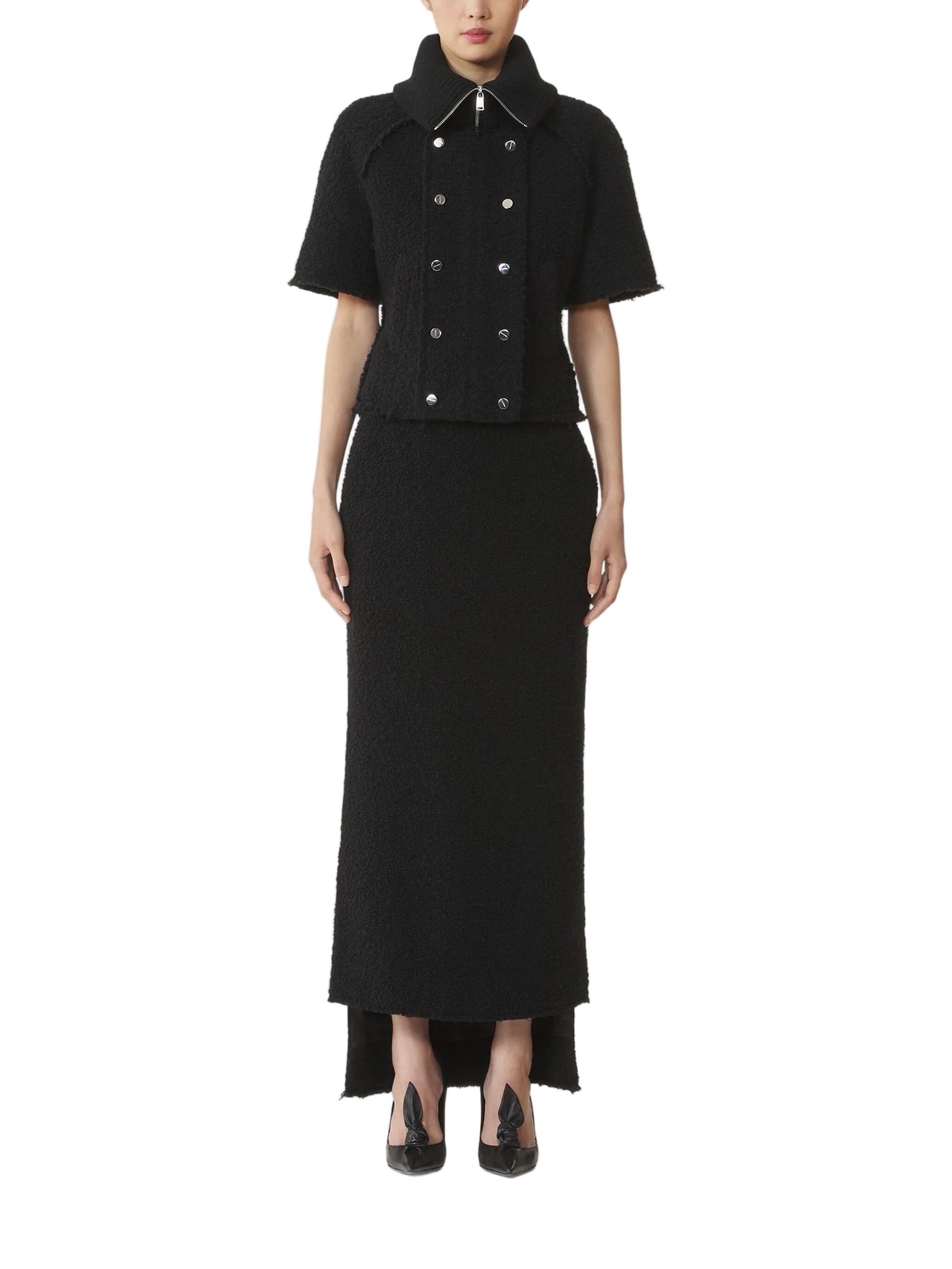 HighlightsBlackTextured effectHigh-riseRear ventStraight hemConcealed rear zip fastening