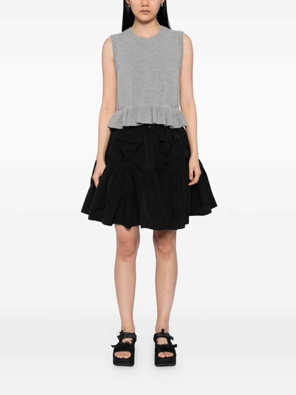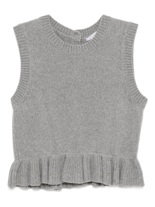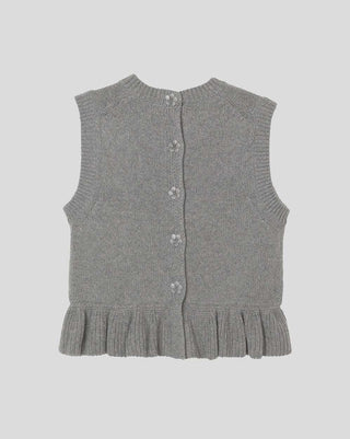 HighlightsGreyRuffled hemSeevelessRound neckButton fasteningFlower-shaped buttons