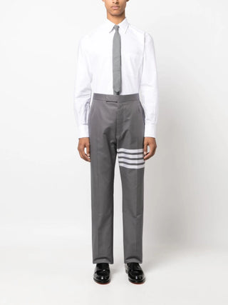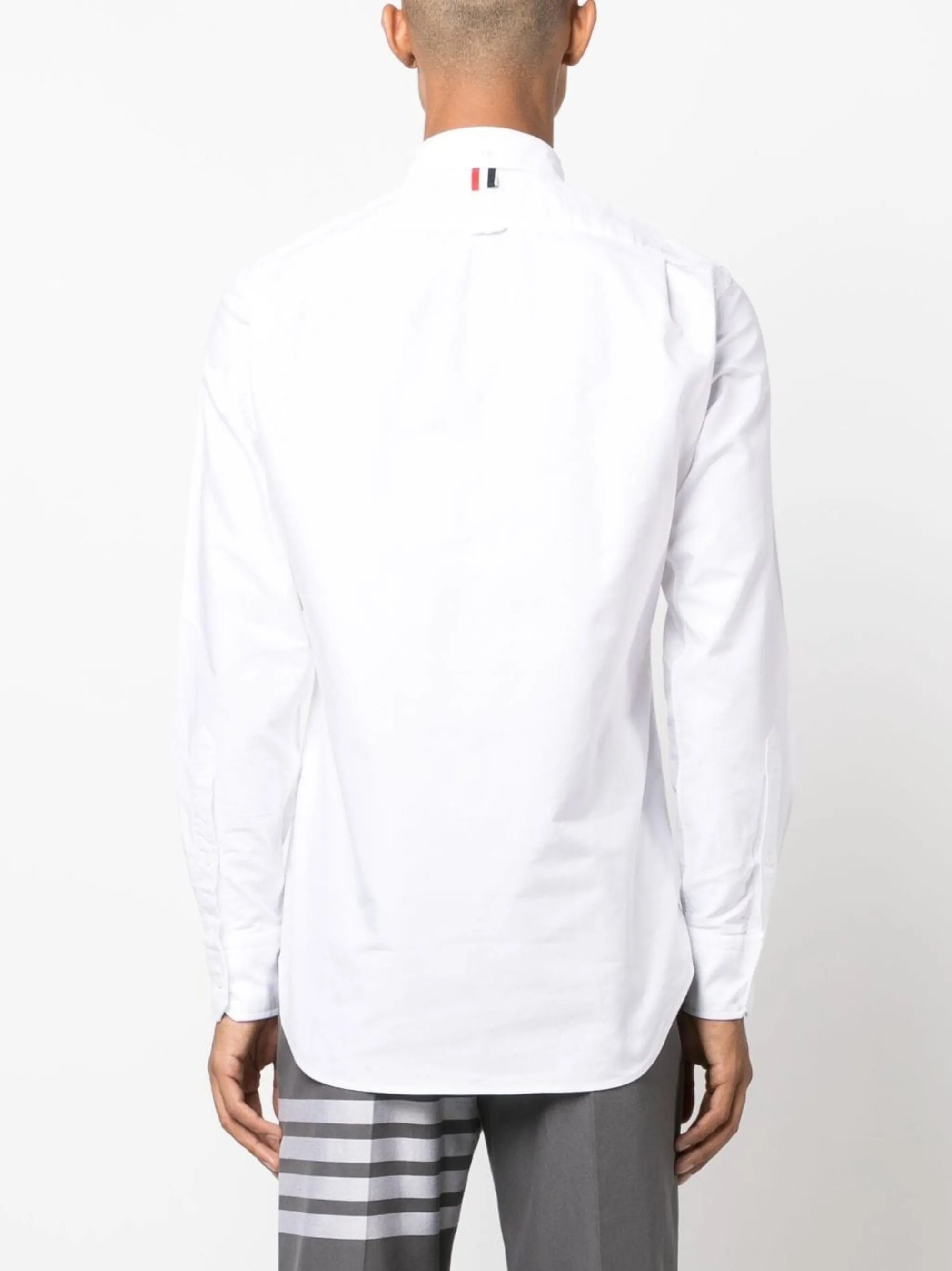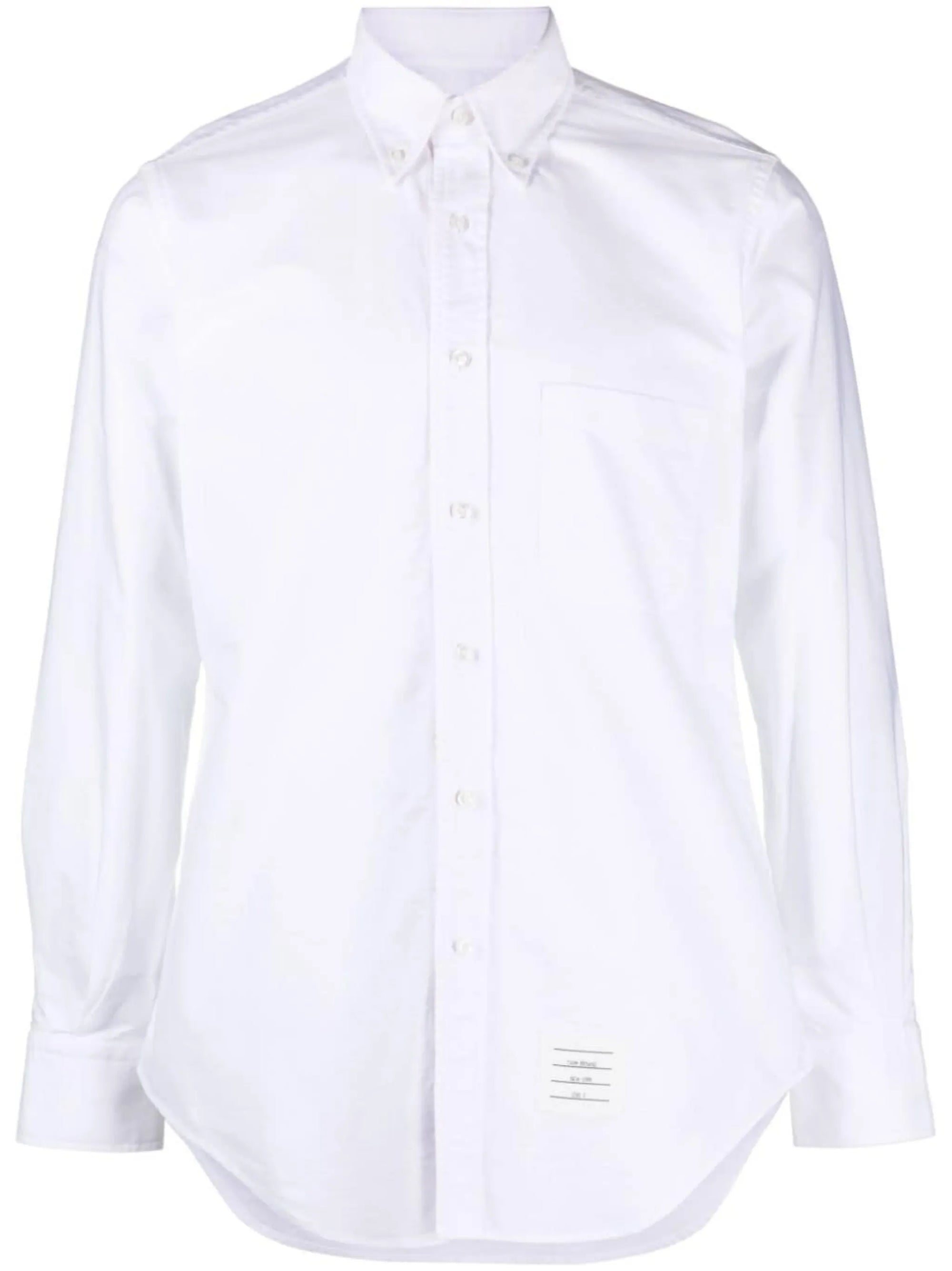 Thom Browne's affinity for sleek silhouettes is captured in the clean lines of this plain white shirt. Crafted from cotton, it is simply detailed with a white logo patch at the hem for a branded touch.