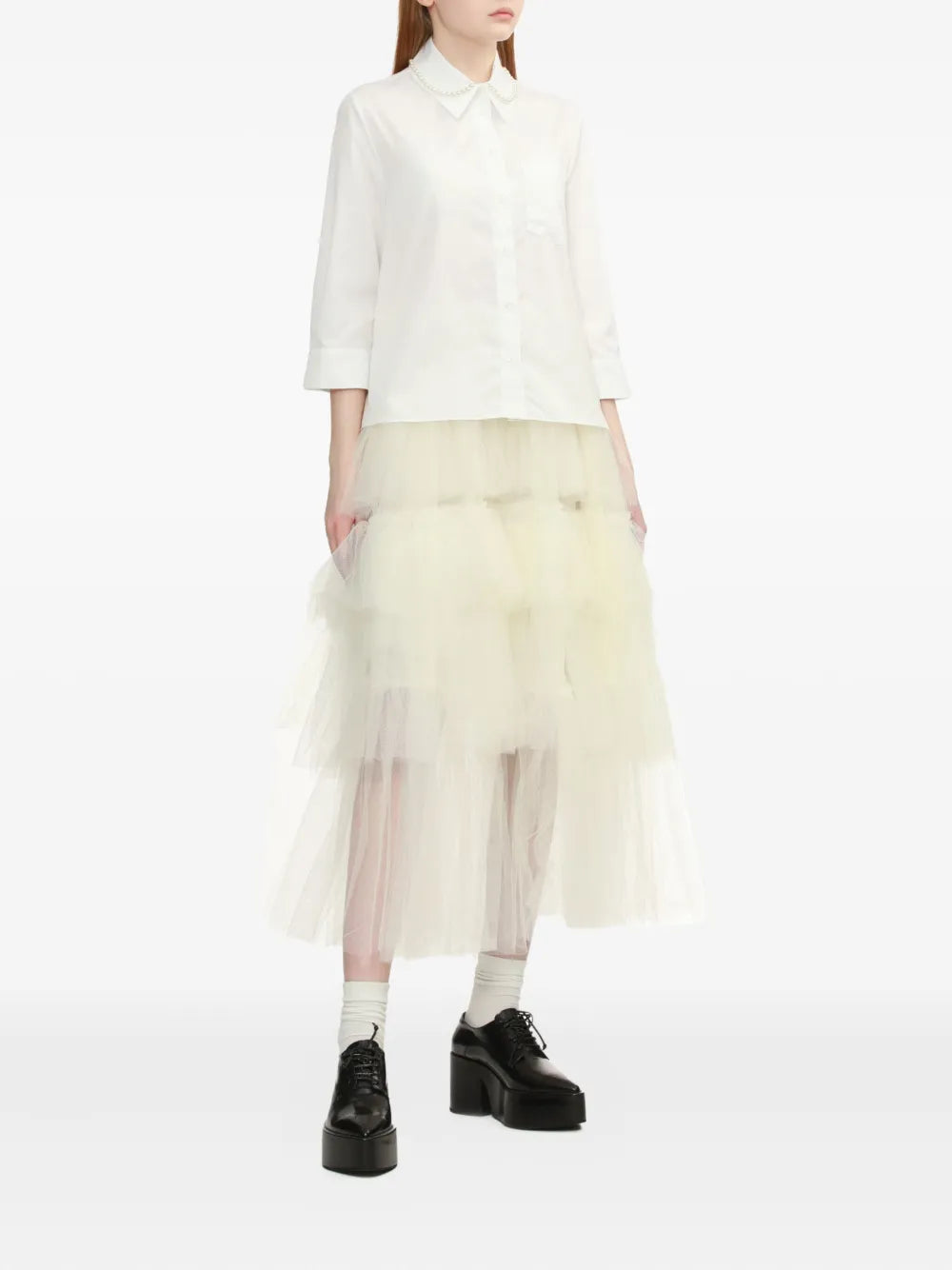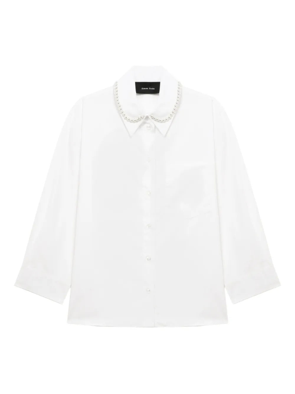 HighlightsWhitePearl-embellished collarThree-quarter sleevesButton fasteningChest patch pocket