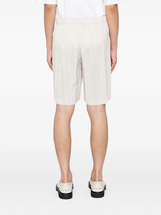 Edge-Ensemble Shorts by Homme Plissé Issey Miyake merge technical precision with everyday ease. Crafted from the brand’s signature lightweight, wrinkle-resistant pleated fabric, they feature a relaxed fit, clean lines, and sharp edge-inspired pleating that adds dynamic structure. Effortlessly modern, they embody the label’s functional elegance and architectural aesthetic.