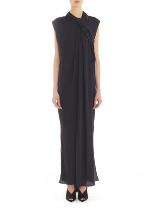 Lanvin’s knot-detail sleeveless dress is crafted from fluid, lightweight fabric that drapes elegantly over the body. Featuring a subtle knot accent at the neckline and a minimalist silhouette, it combines understated sophistication with a modern, feminine touch.