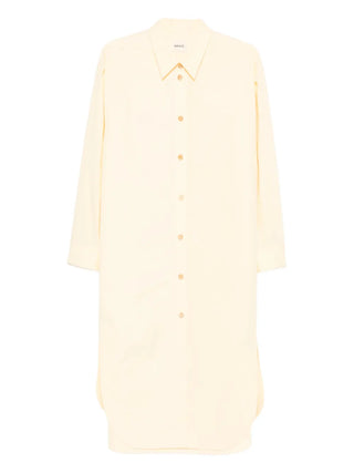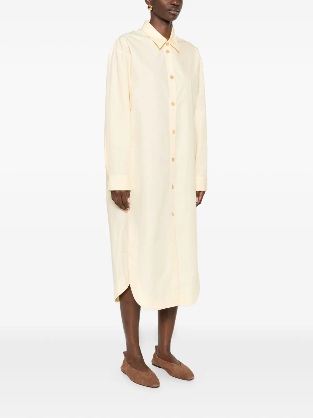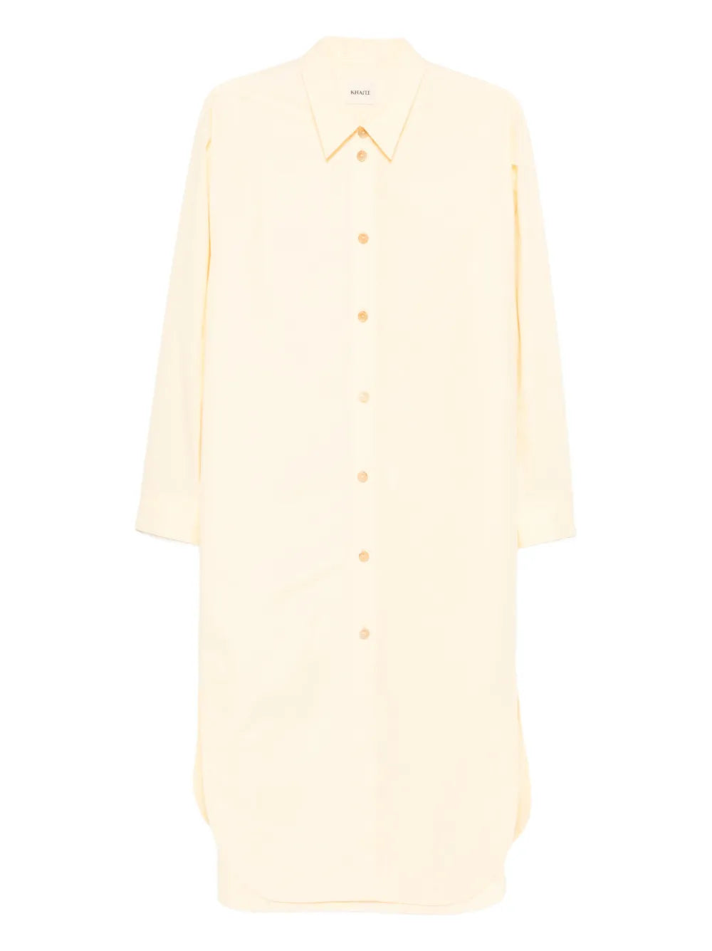 HighlightsYellowStraight-point collarButton fasteningLong sleevesCurved hem