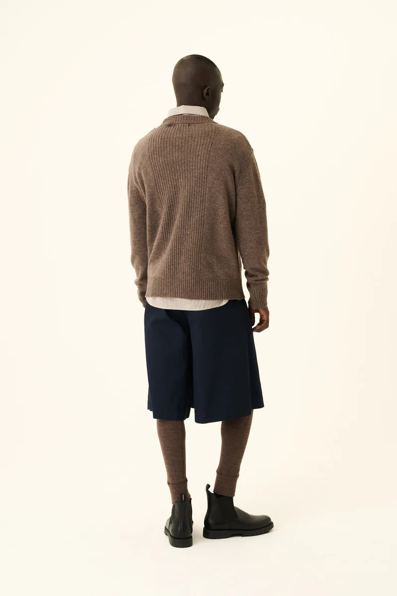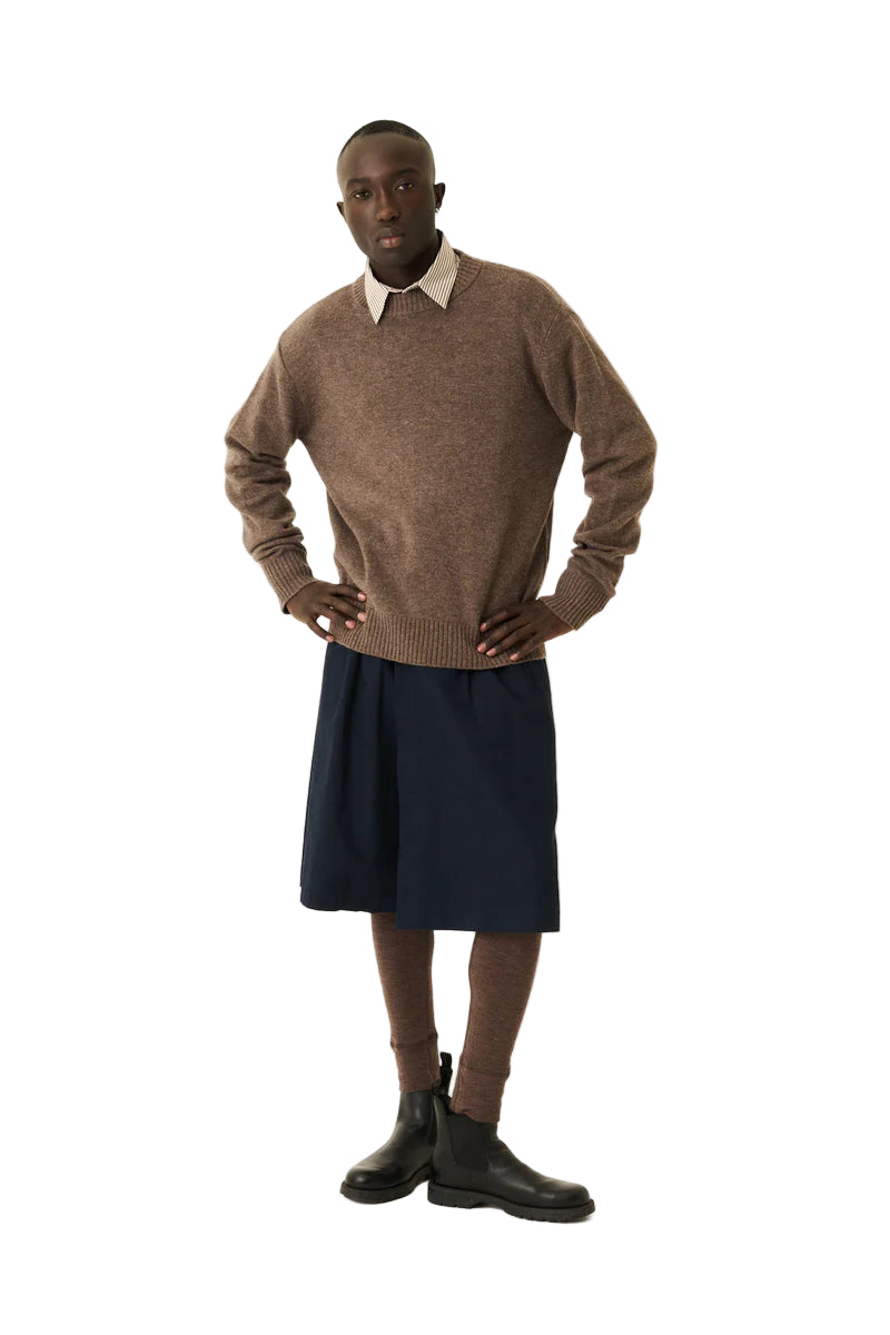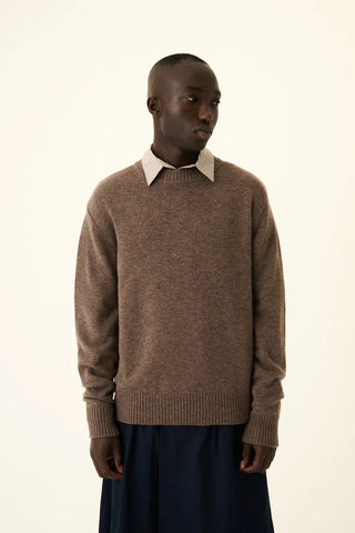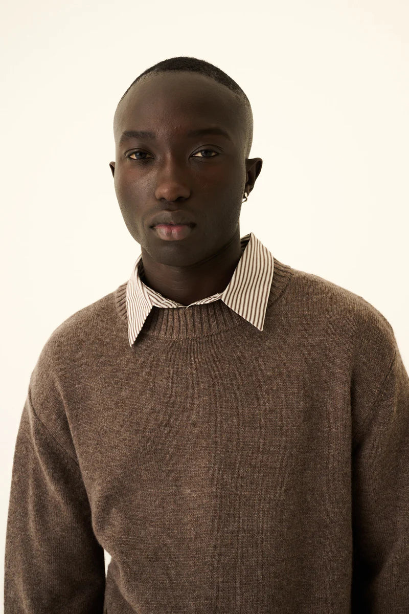 Introducing the Karlos Merino Cashmere Blend Sweater from Rue de Tokyo, a regular crewneck knit sweater designed for the modern man. Available in a rich brown tone, this sweater combines style with comfort, making it an essential addition to your autumn/winter wardrobe.
