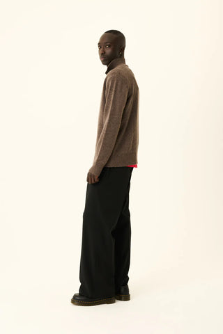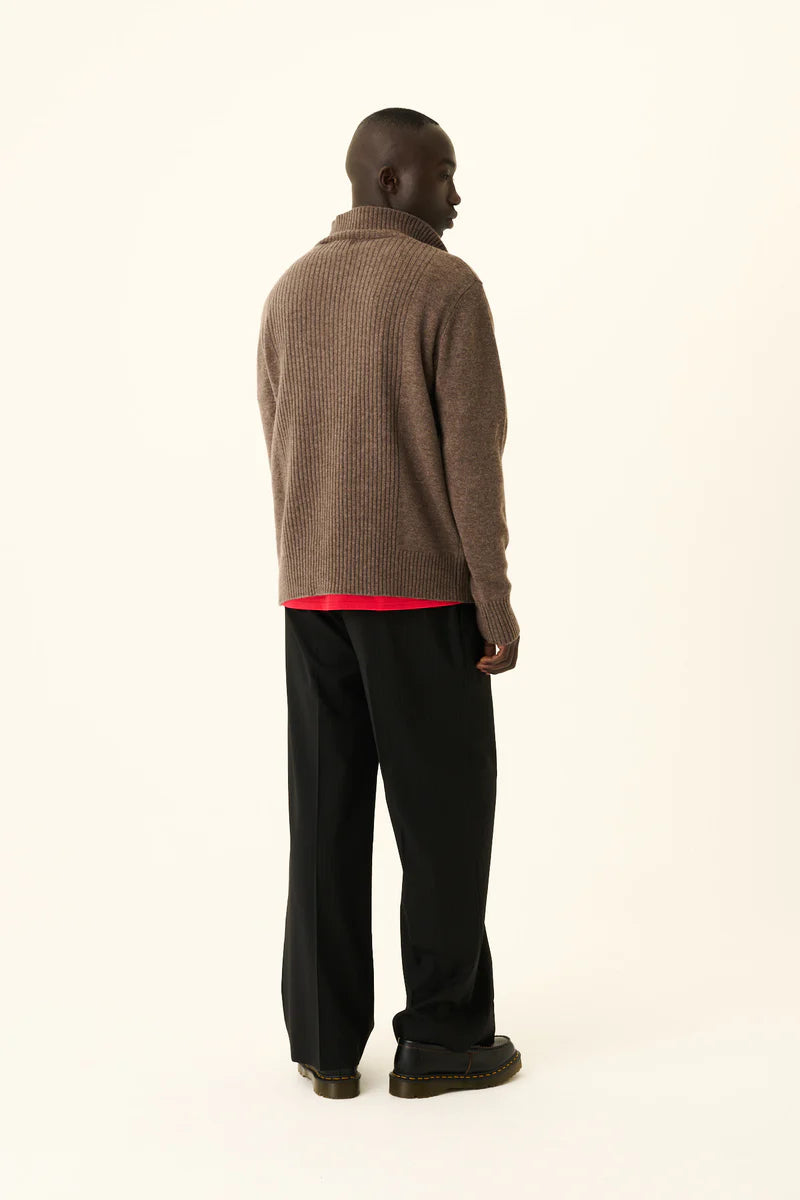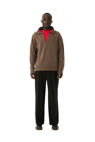 Discover the Keith Merino Cashmere Blend Polo Knit Sweater, a refined choice for the modern man. This sweater is designed in a sophisticated brown shade, perfect for the autumn and winter seasons. The polo collar and v-opening offer a versatile look that transitions effortlessly from casual to sophisticated settings. Rib details provide a subtle texture that enhances its relaxed fit, while the premium fabric ensures comfort and warmth.