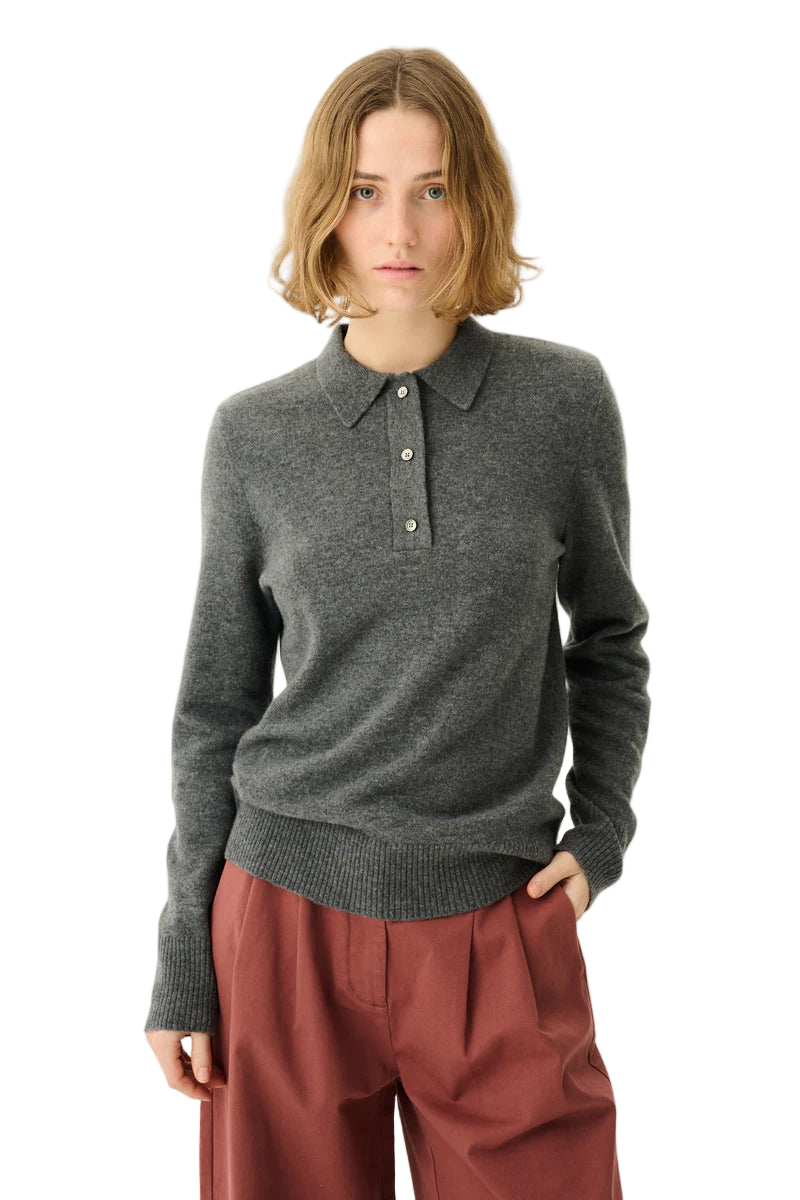Elevate your wardrobe with the Kura Organic Merino Wool sweater from Rue de Tokyo. Crafted in a sophisticated grey tone, this slim fit knit polo sweater is designed to offer both style and comfort. Ideal for those who appreciate quality materials and timeless design, this piece is perfect for any occasion.