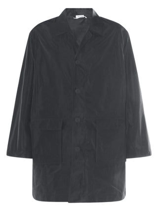 HighlightsGreyFront button fasteningSide flap pocketsLong sleevesRear logo print