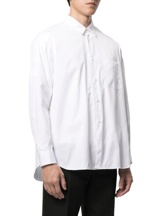 Highlights:WhiteCottonClassic collarLong sleevesButtoned cuffsFront button fasteningChest patch pocket