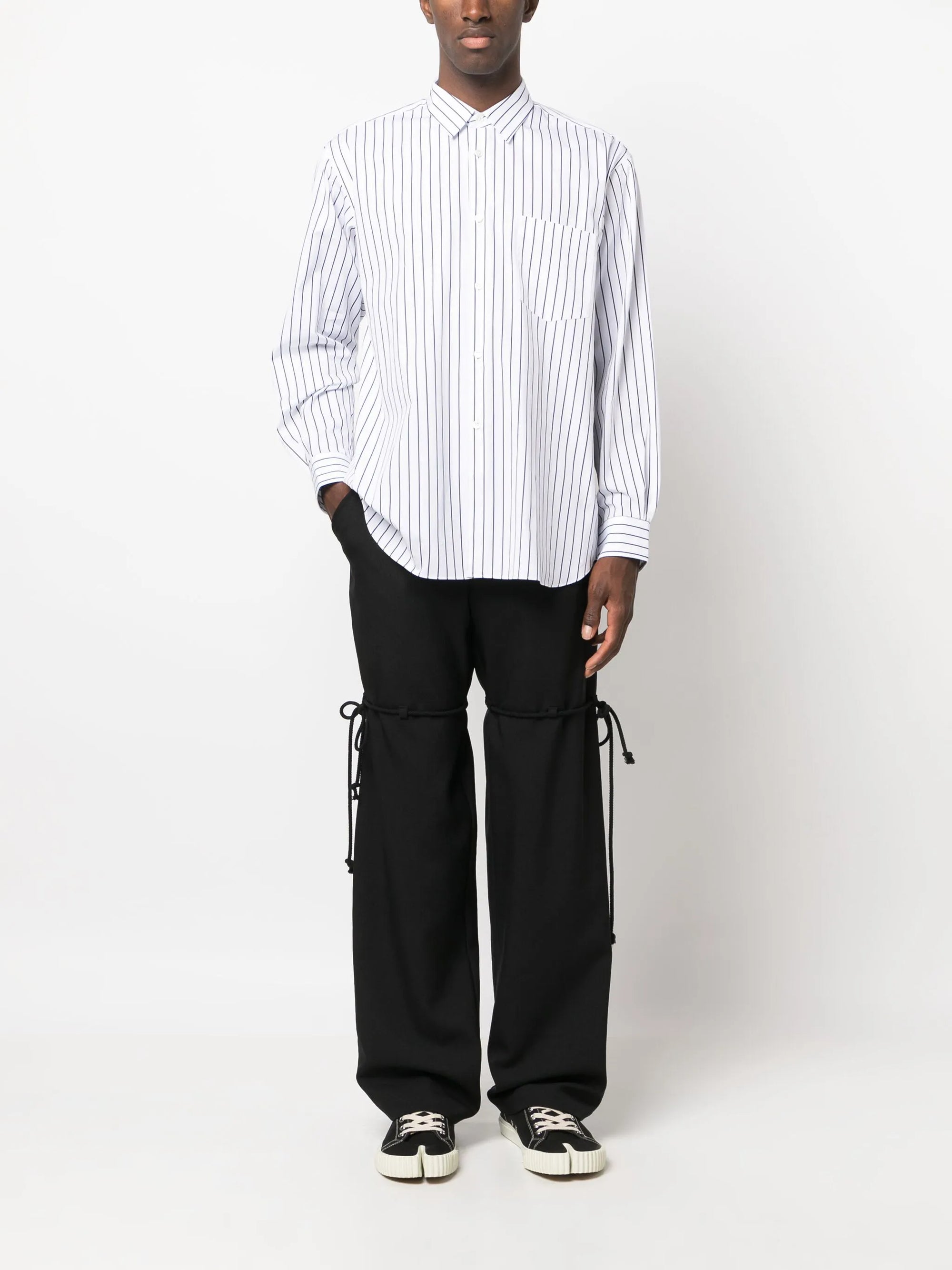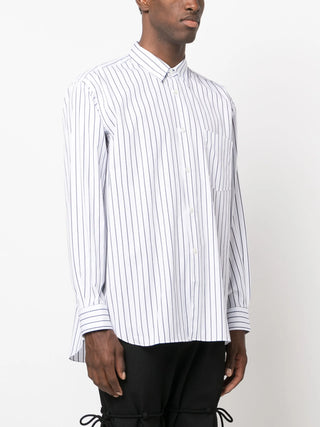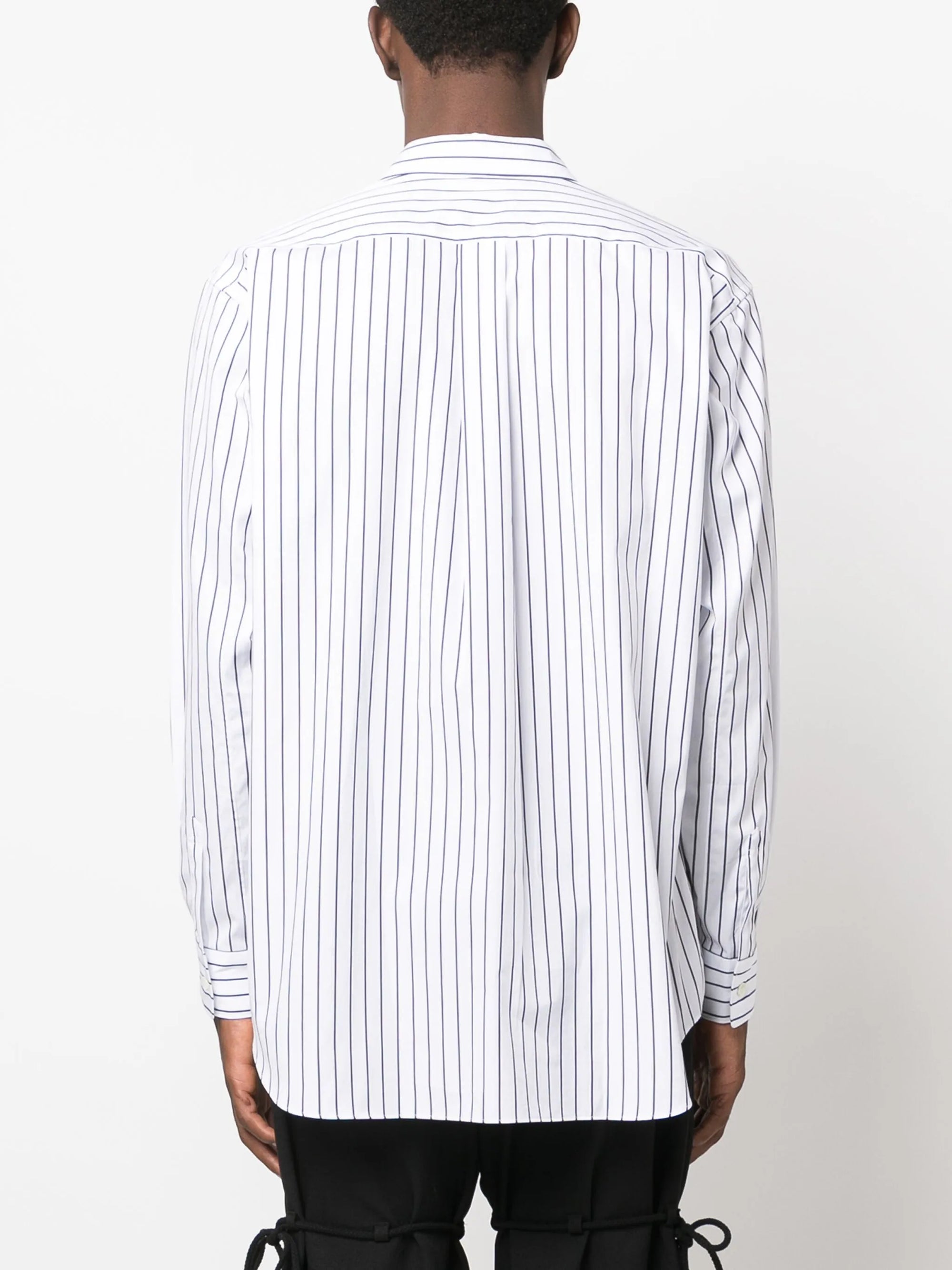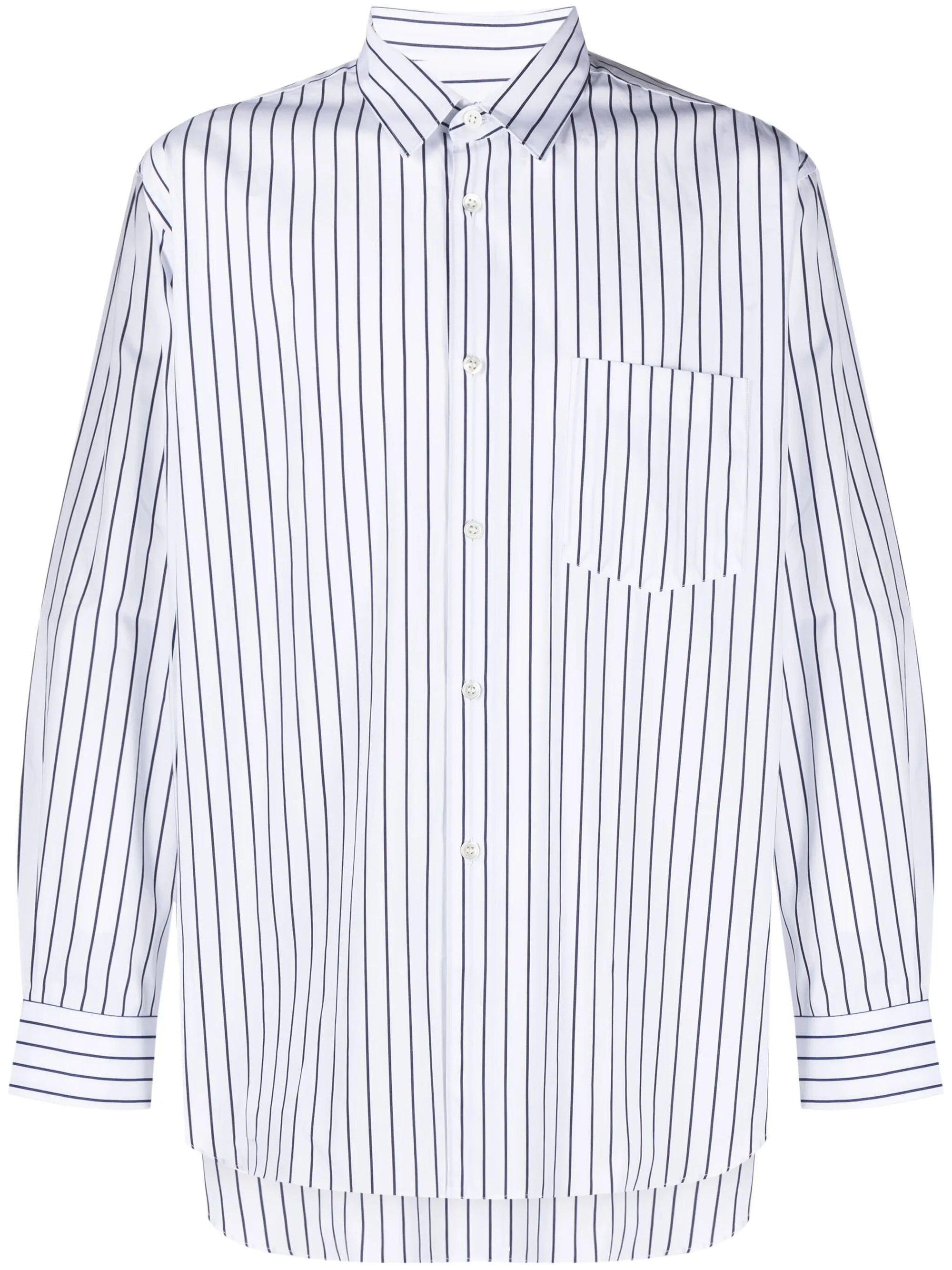 HighlightsOptical white/navy blueCottonVertical stripe patternClassic collarFront button fasteningLong sleevesButtoned cuffsChest patch pocketCurved hem