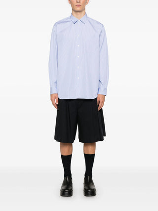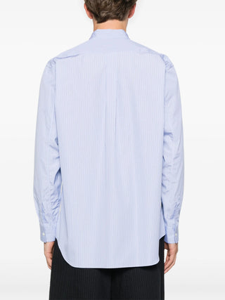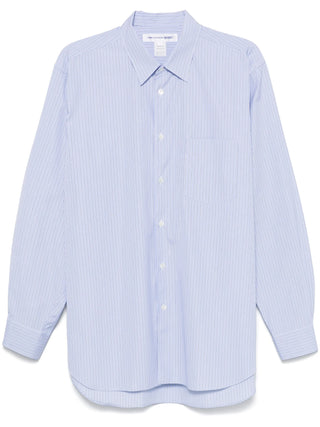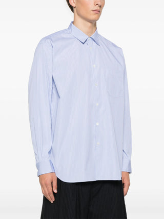 HighlightsCornflower blueCottonPoplin textureVertical stripe patternFront button fasteningClassic collarLong sleevesButtoned cuffsChest patch pocketBox-pleat detail at the backCurved hem