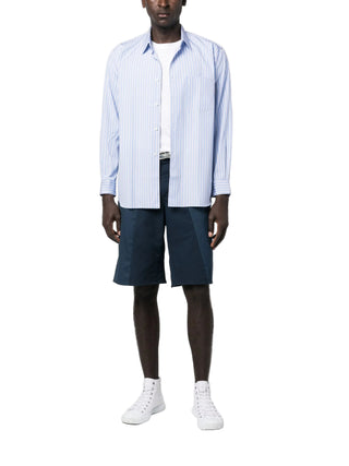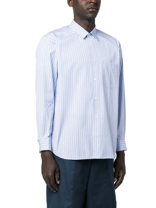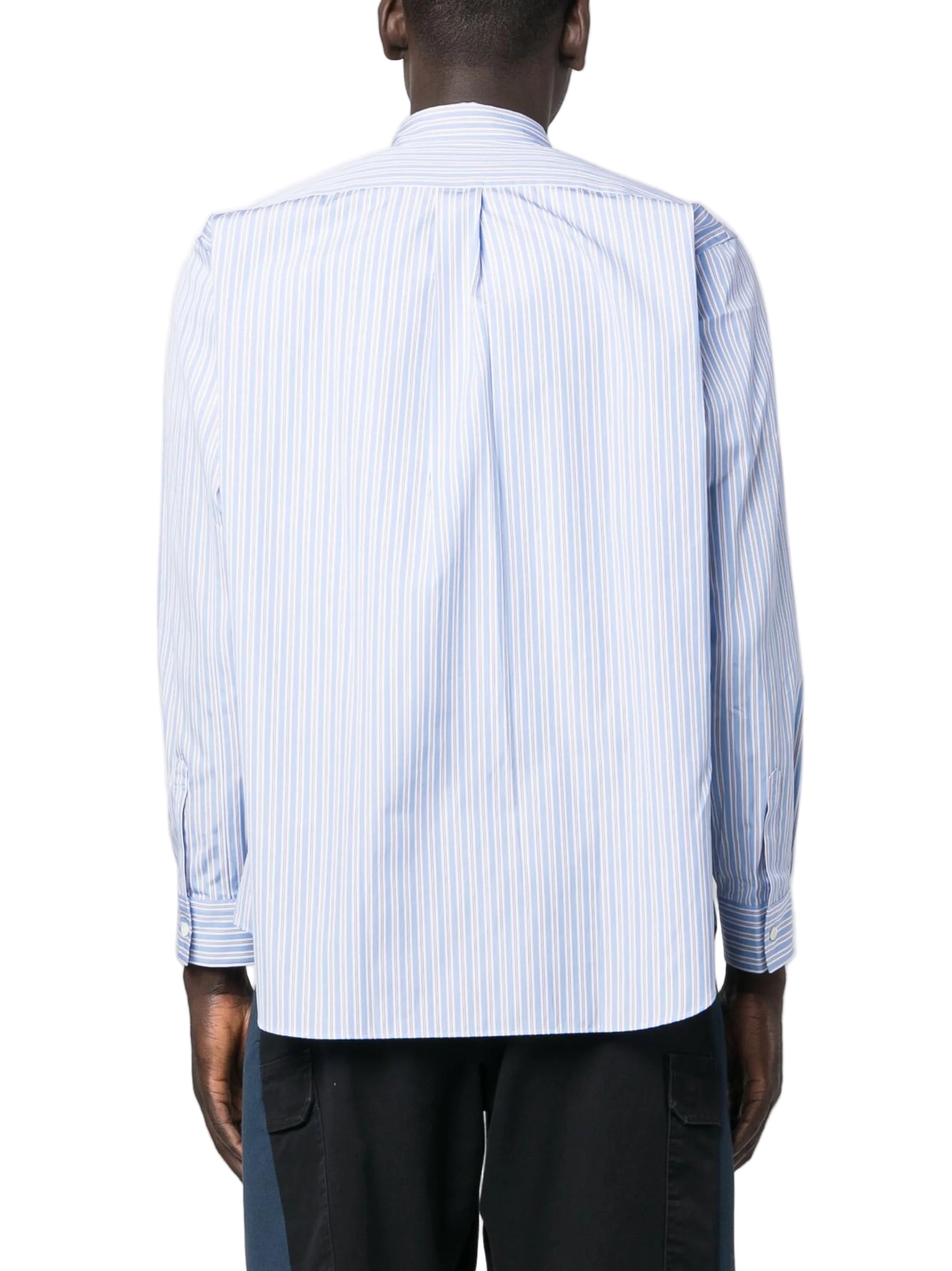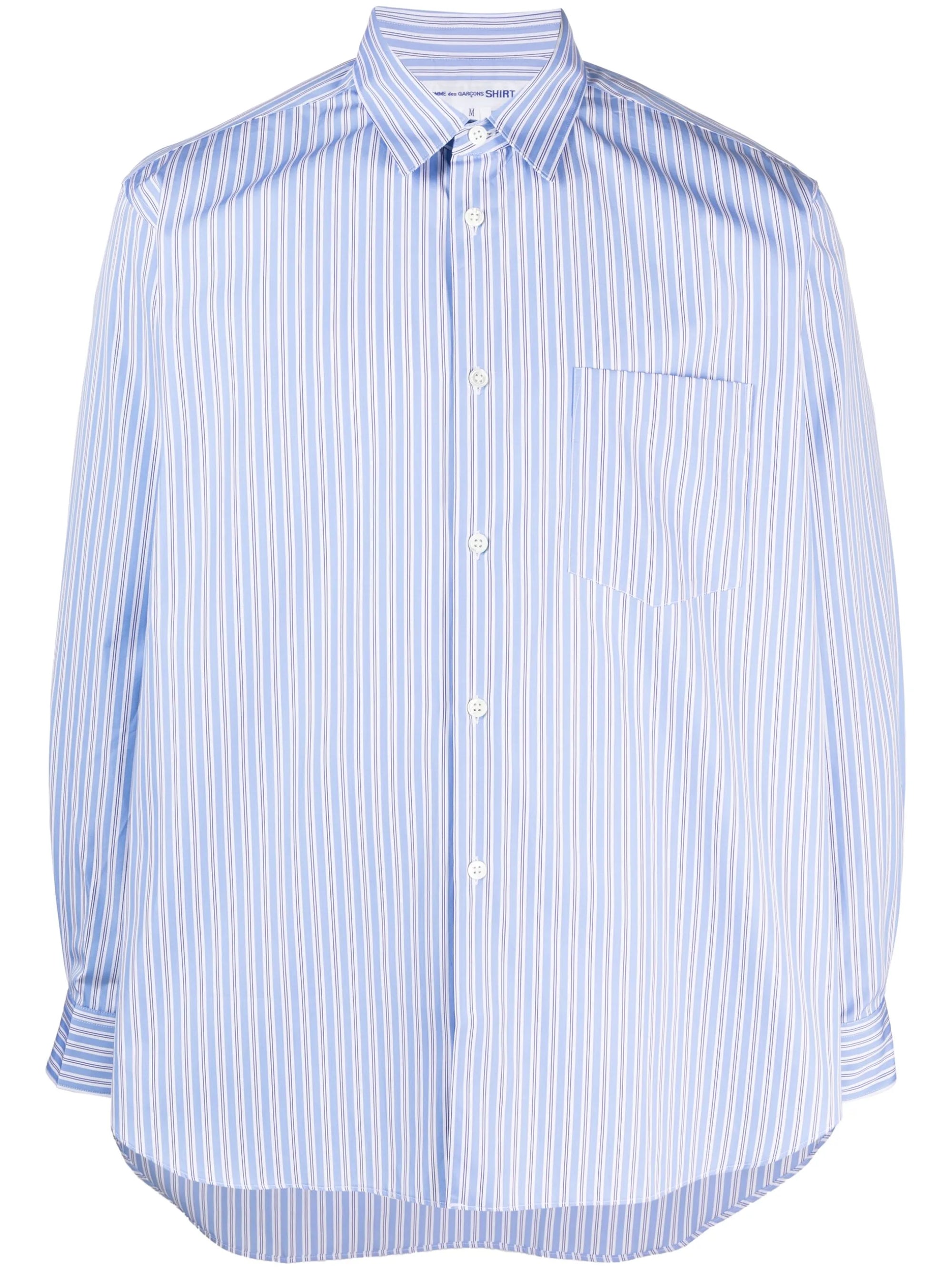 HighlightsCornflower blueCottonPoplin textureVertical stripe patternFront button fasteningClassic collarLong sleevesFront button fasteningChest patch pocketBox-pleat detail at the backCurved hem