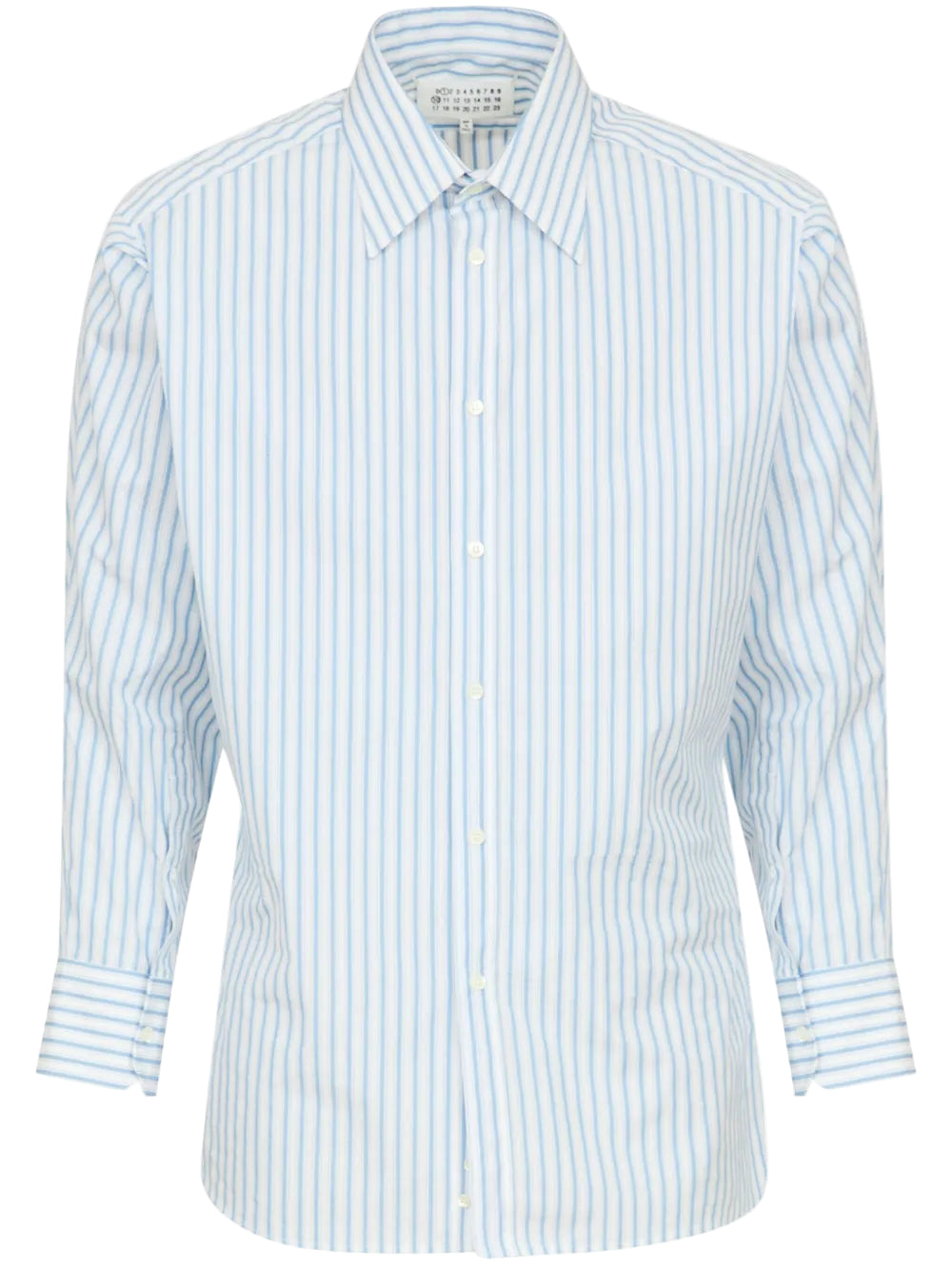 Maison Margiela’s long-sleeved shirt is tailored from crisp cotton for a refined, modern fit. Designed with a pointed collar, button-front closure, and subtle tonal stitching, it reflects the house’s minimalist aesthetic. The discreet four-stitch detail at the back adds a signature finishing touch to this versatile wardrobe essential.