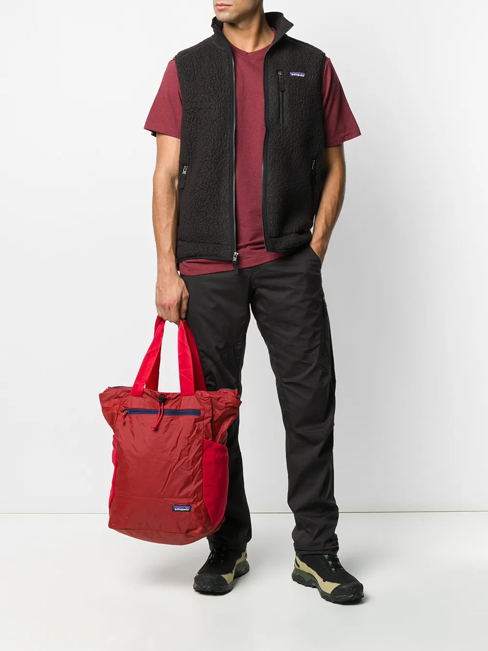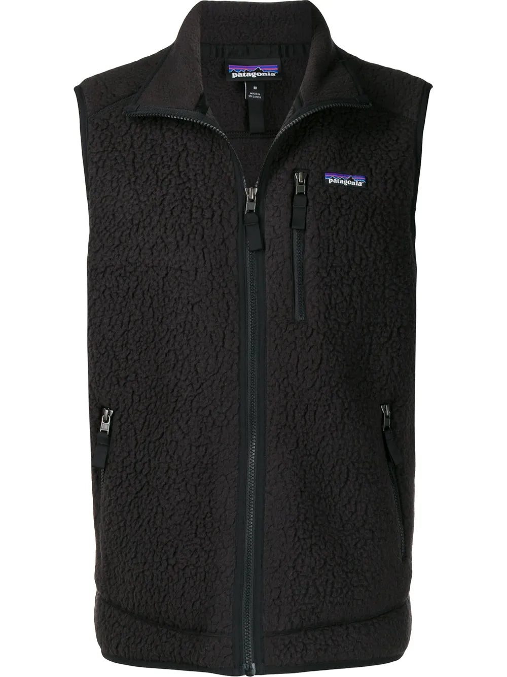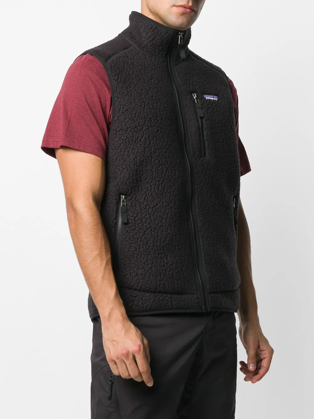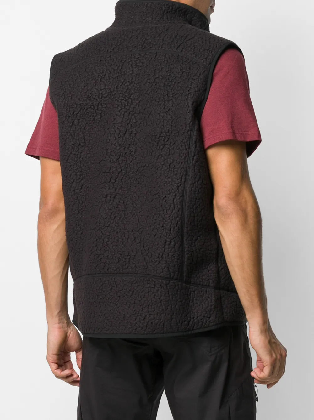 Black High standing collar Front zip fastening Sleeveless design Zipped chest pocket Zipped side pocketsFront logo patch.