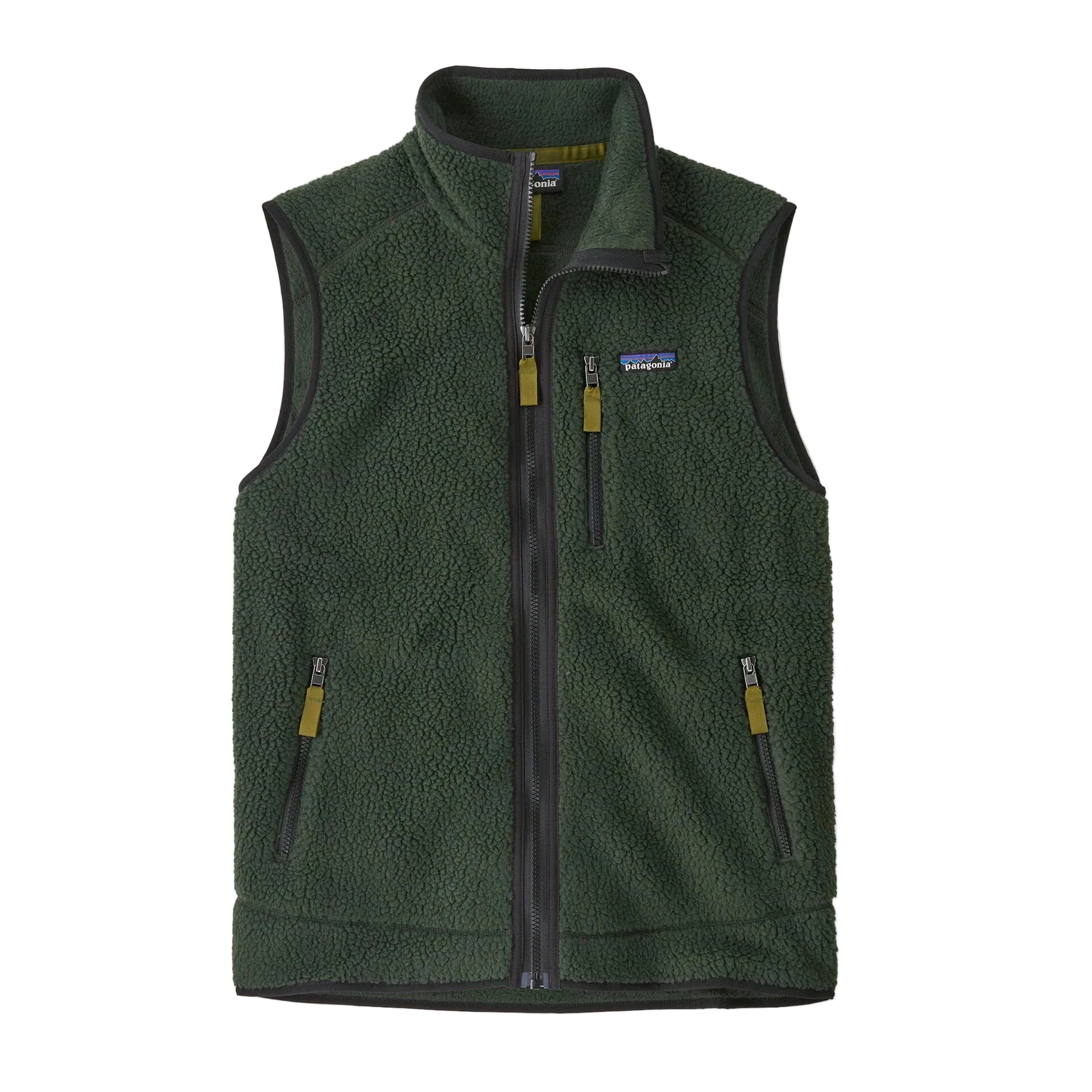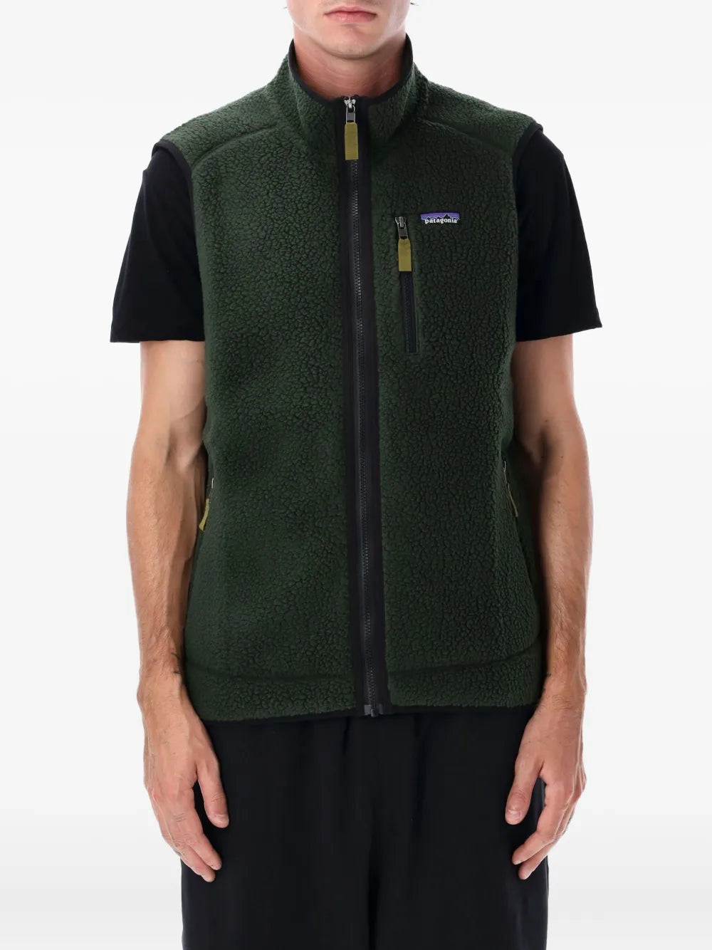 HighlightsDark greenFleece textureFront zip fasteningHigh neckZip pocketsSleeveless