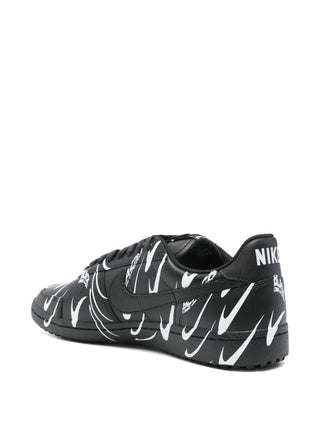 The Comme des Garçons Black x Nike Field General '82 reimagines the archival silhouette with a sleek, all-black leather upper and tonal suede overlays. Elevated with minimalist branding and a low-profile fit, this refined take blends military-inspired heritage with CDG’s signature avant-garde restraint—crafted for understated impact on and off the street.