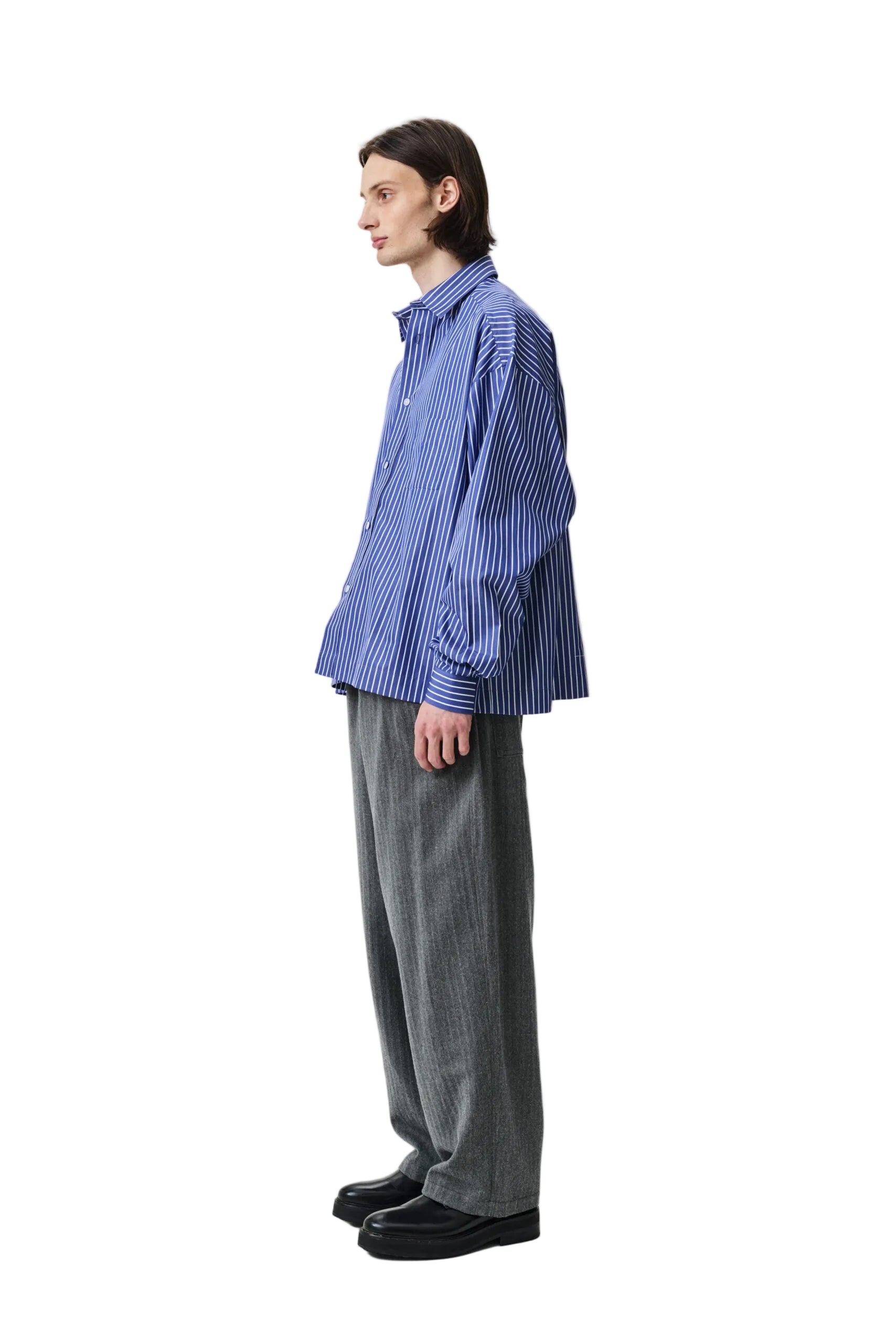 A classic men’s shirt made oversized with an extra deep arm opening for volume featuring a straight bottom and higher hem.