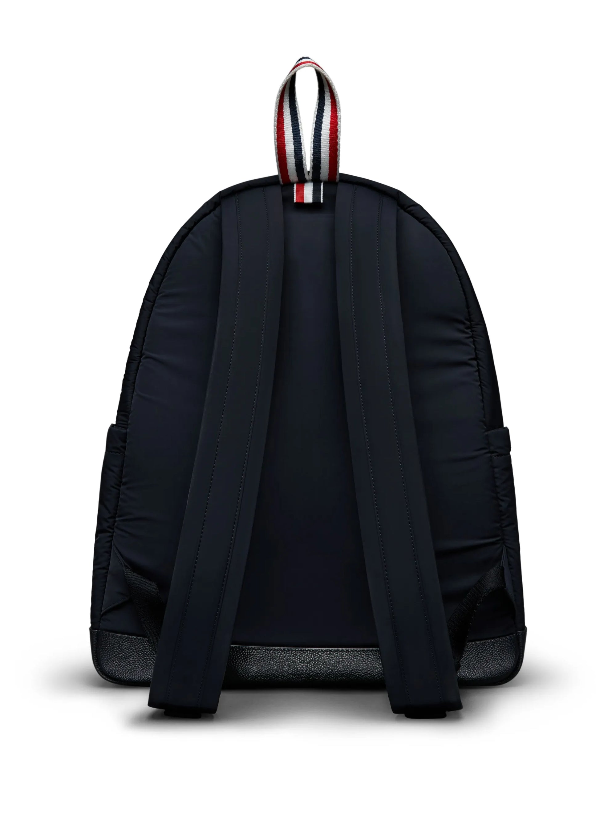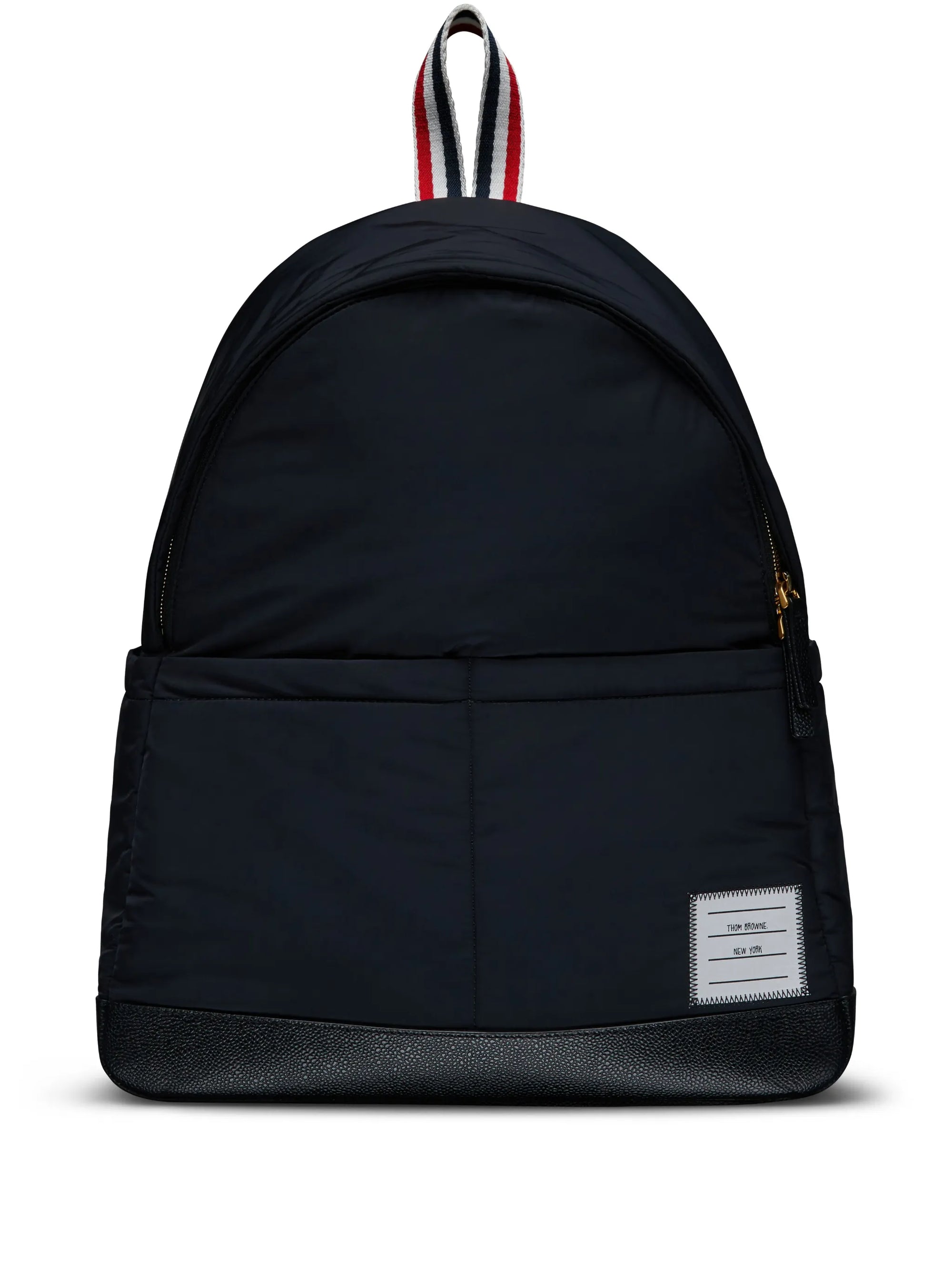 HighlightsBlackAppliqué logoTwo-way zip fasteningSingle flat top handleTwo padded adjustable shoulder strapsFront patch pocketTwo side slit pocketsMain compartmentStriped liningInternal logo tag