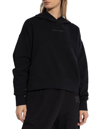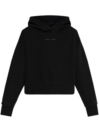 Highlights:BlackCottonLogo print to the frontClassic hoodDrop shoulderLong sleevesRibbed cuffs and hem