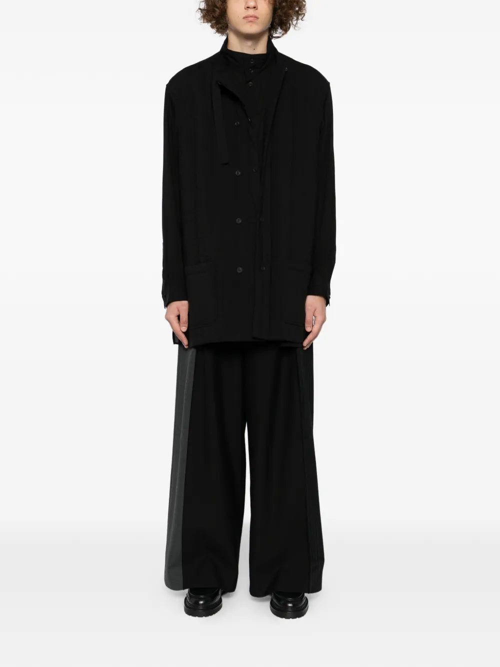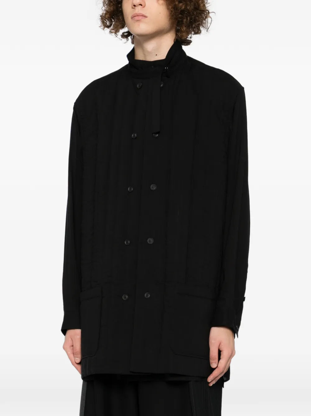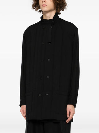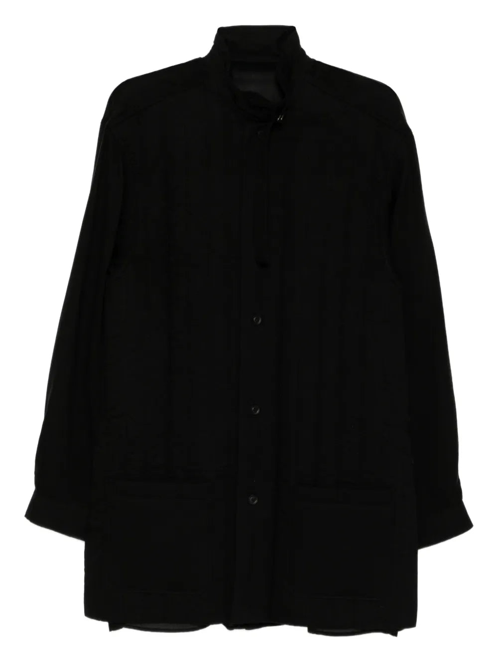 HighlightsBlackFront button fasteningTwo front patch pocketsButtoned-cuff sleevesShort side slits