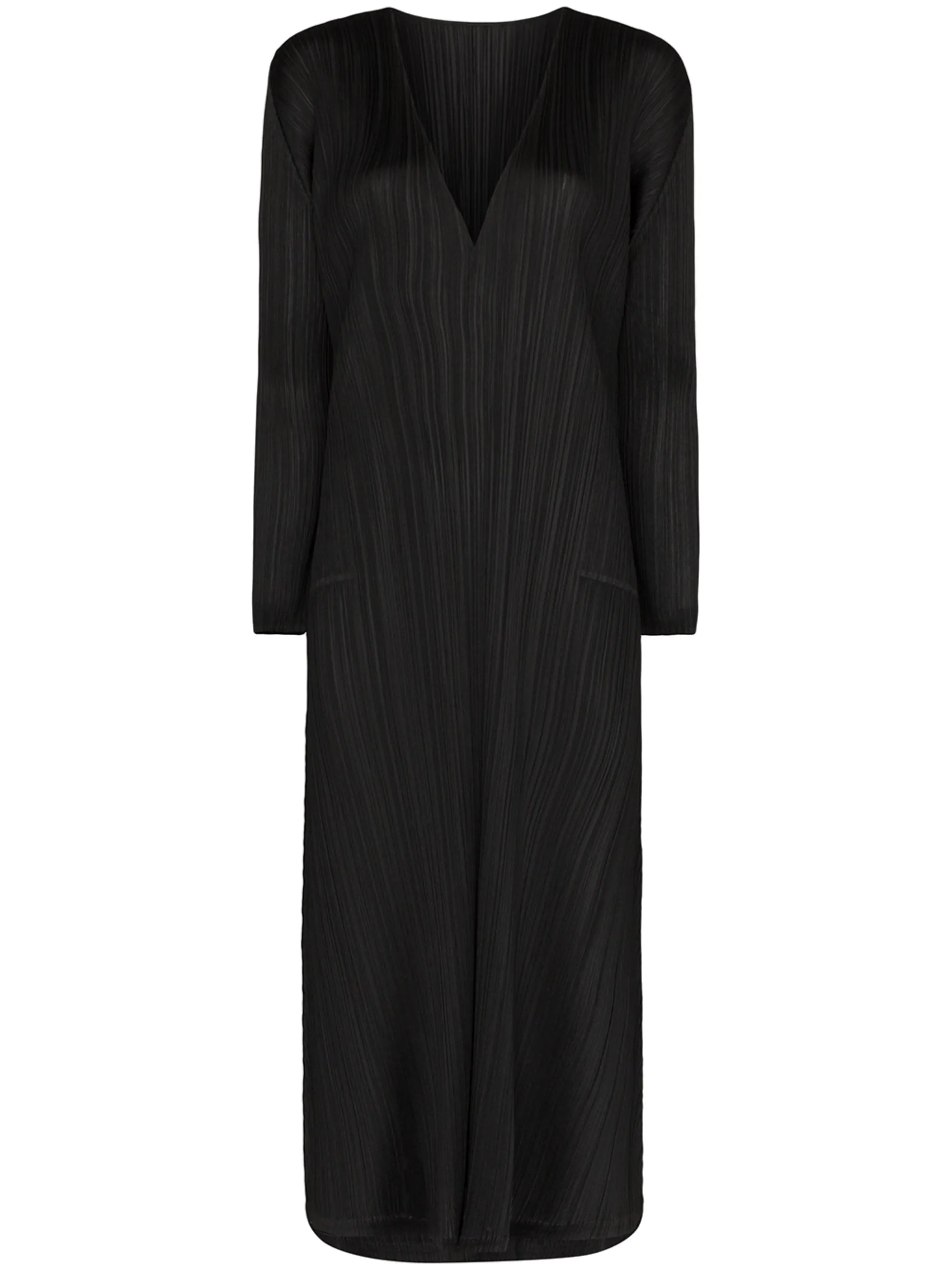 The Pleats Please Issey Miyake Pleats Black Dress is a mid-length style with a relaxed shift silhouette and the brand’s signature pleated finish. The design features a flattering V-neckline and long sleeves, creating a clean, elongated line on the body. Lightweight and comfortable, it can be dressed up with heels or worn with flats for an easy everyday look. This style is available at our Lisbon store.