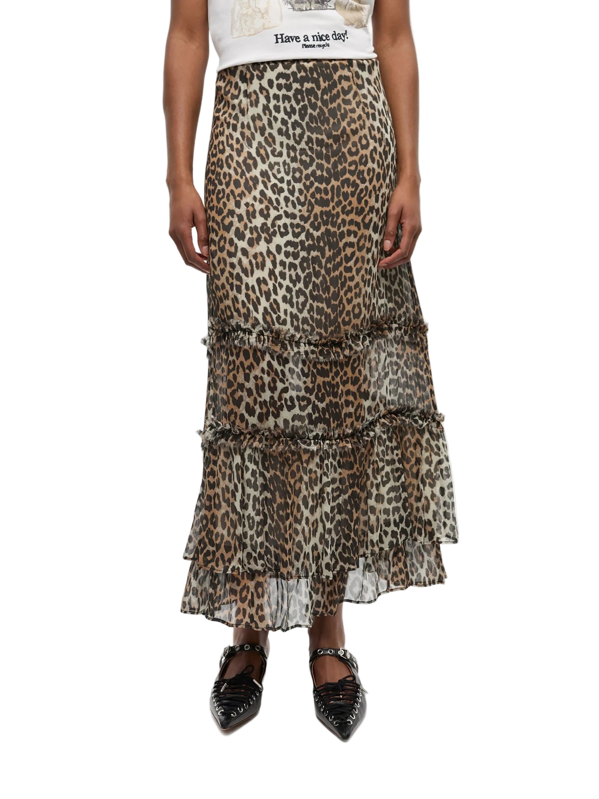HighlightsBeigeConcealed side zip fasteningRuffled detailingHigh-waistedStraight hem