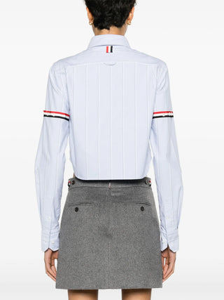 HighlightsNavy blueCottonPinstripe patternRWB stripeLogo patch to the sideButton-down collarFront button fasteningLong sleevesButtoned cuffsChest patch pocketCurved hemCropped