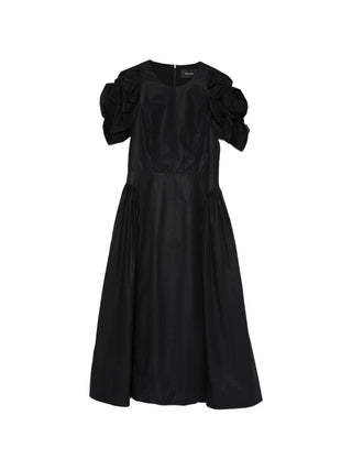 Simone Rocha’s black rose puff sleeve hip dress embodies the designer’s modern feminine aesthetic. Crafted with voluminous puff sleeves and a round neckline, it creates a balanced silhouette that flatters the form. Finished with a discreet zip fastening, the piece offers both ease and elegance. Ideal for evening wear or elevated daytime styling — available at our Lisbon store.