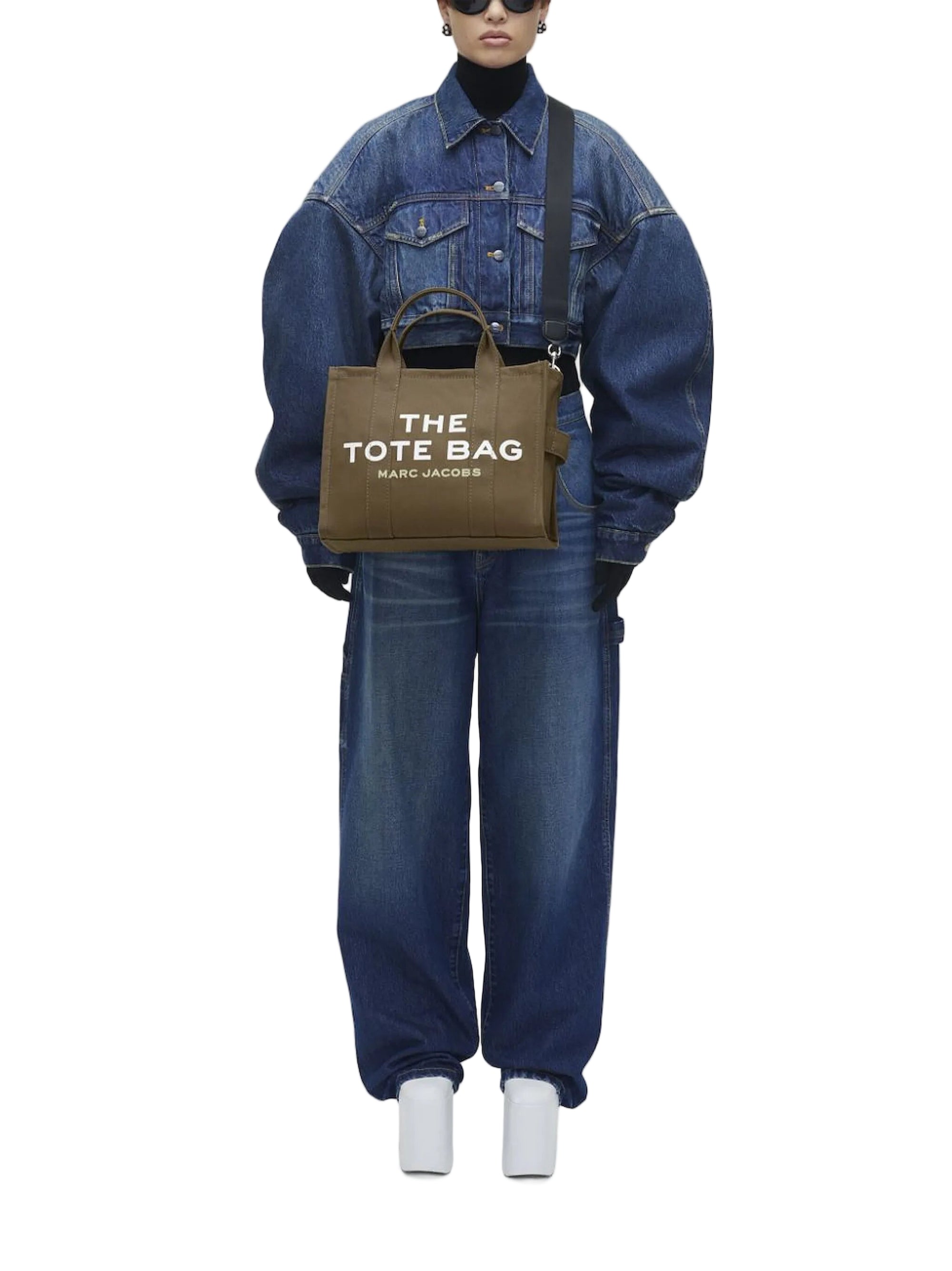 Defined by its structured silhouette and bold front branding, The Tote is an iconic Marc Jacobs’ design. Seen here in a moss green hue, the accessory opens up to a spacious interior complemented by multiple pockets for added functionality.