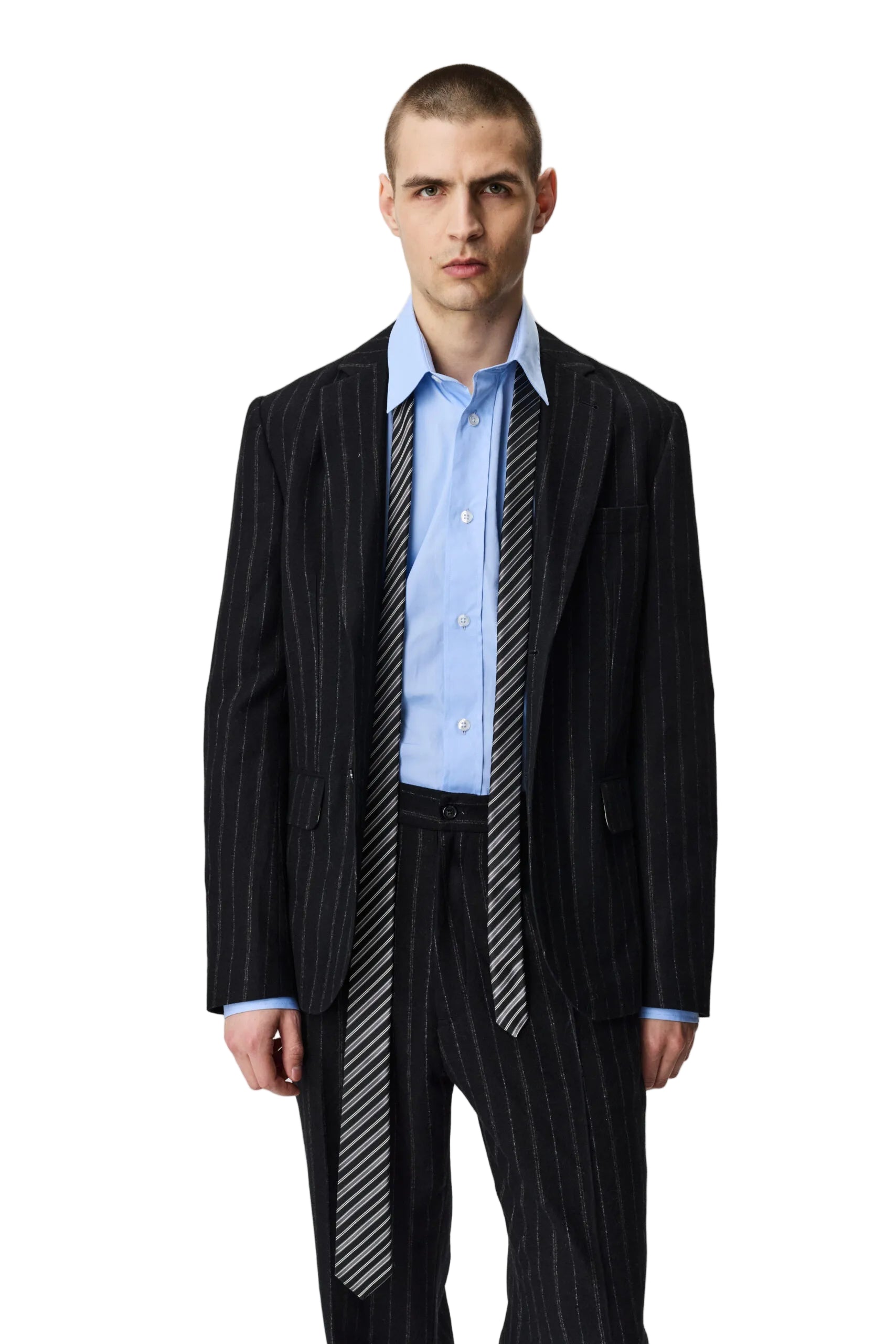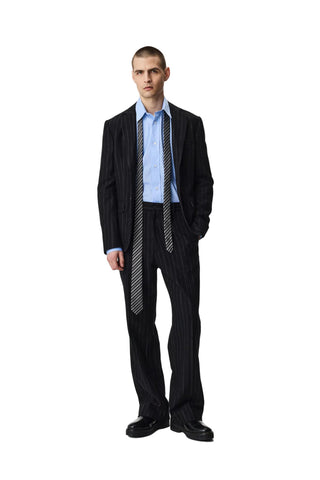 The Long Tie 242 in Black Stripe by Adnym Studios offers a refined twist on a classic accessory. Crafted from premium fabric, its elongated silhouette and subtle striped pattern add a modern, understated edge. Designed for versatile styling, this piece embodies Adnym’s signature blend of minimalism and quiet sophistication.