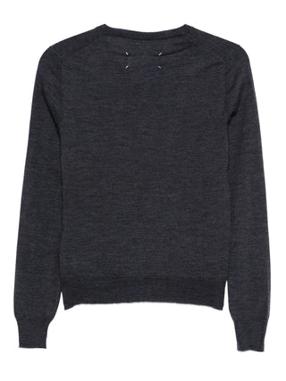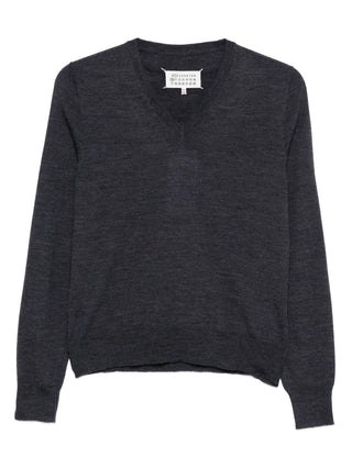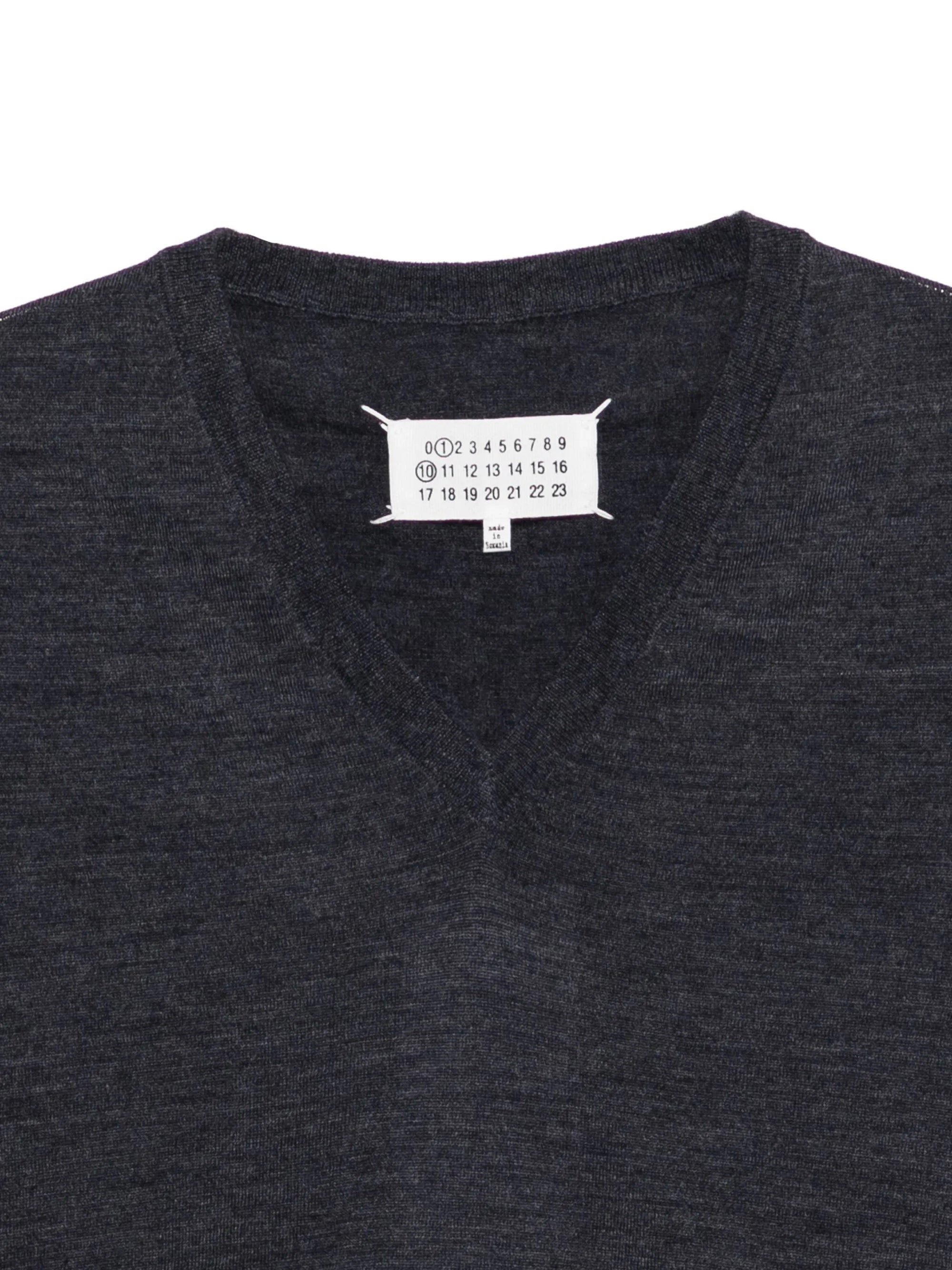 HighlightsCharcoal greyV-neckLong sleevesRibbed cuffsStraight hemNumber label